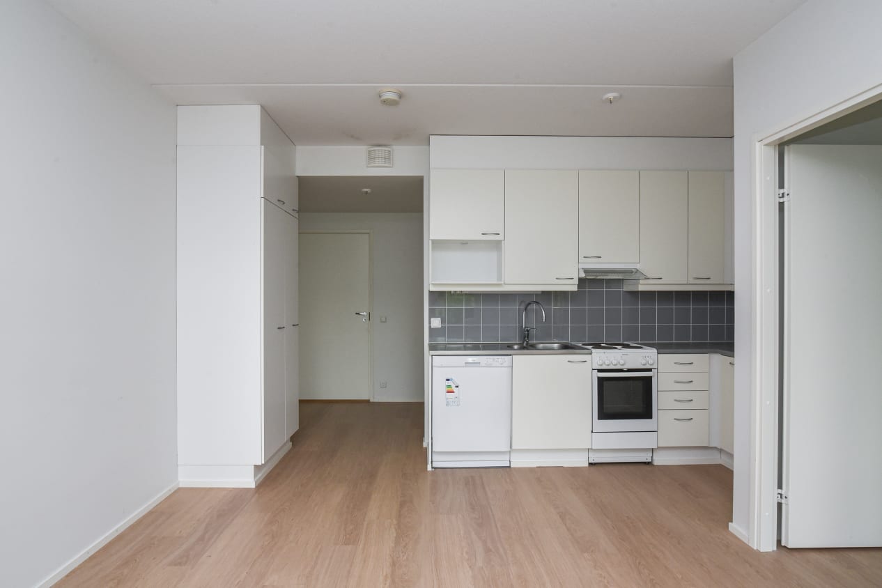 There are two apartment buildings in Kulovalkeantie, consisting of two to five storeys. The apartment layouts are clean and spacious, and the kitchens open to the living areas. The homes on the upper floors have a glassed-in or French balcony, while those on the ground floor have a private ground-level terrace. The spacious bathrooms have space and hookups for a washing machine, and some of the apartments have a private sauna.