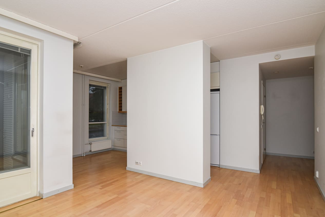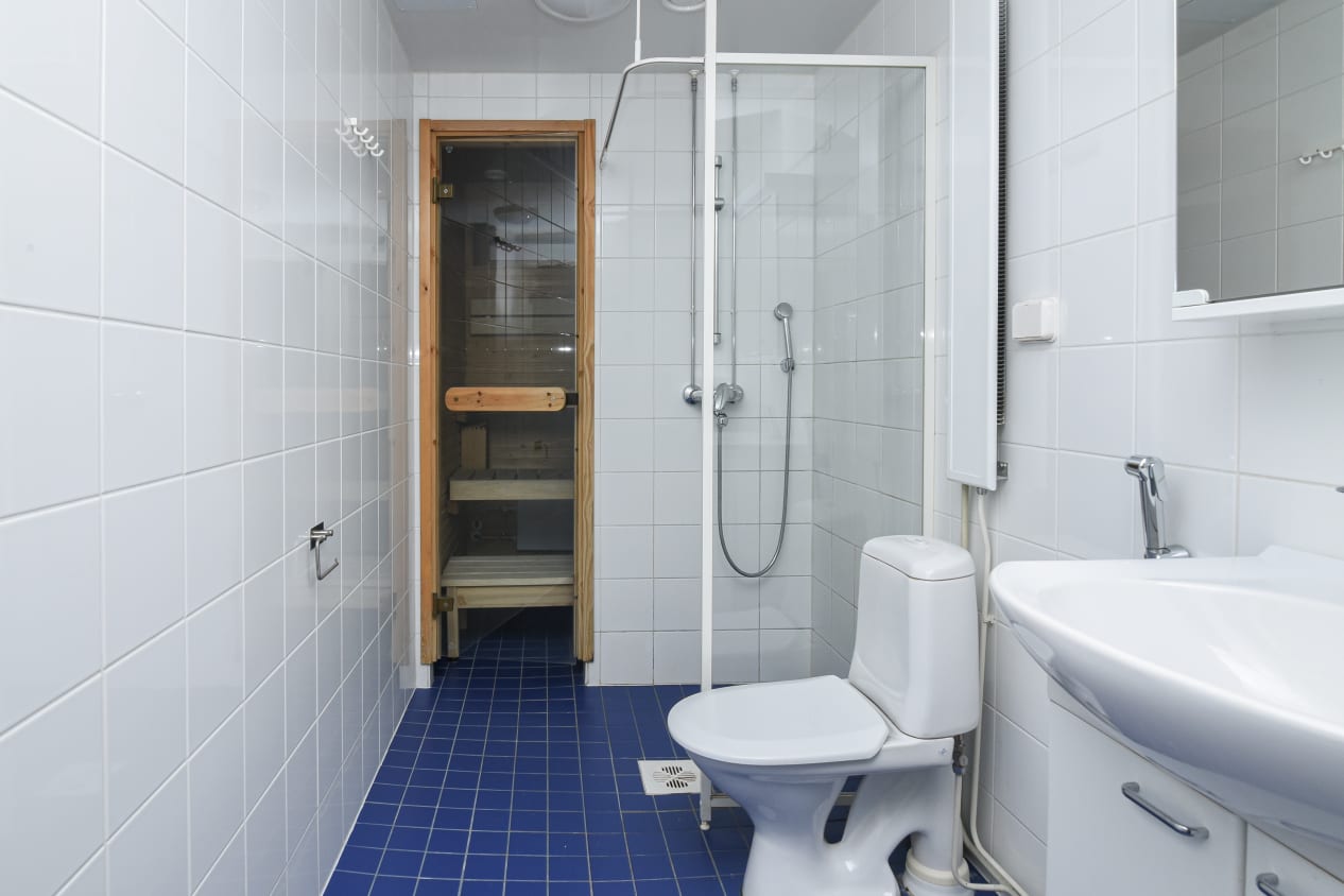 Nestled between Bokvillan and Rajasampa parks, this one-bedroom home impresses with its practical layout. The kitchen features a bright and cosy dining area, and the living room comfortably accommodates a larger sofa set. The balcony offers a modern urban view towards the block courtyard to the south. The spacious walk-in wardrobe is perfect for storing coats and hobby equipment. The home is completed by its own sauna.