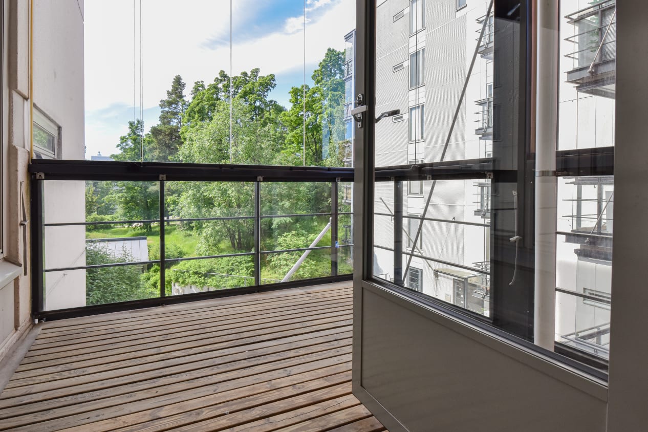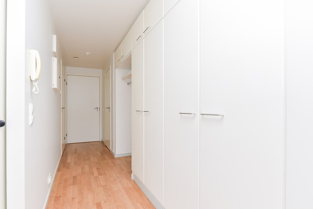 All of the homes in this brand-new building in Arabianranta have a balcony. The living room, bedroom, hallway and kitchen floors are parquet, while the bathroom floor and walls are tiled. There is space for a washing machine and dryer in the bathrooms, and the kitchens are equipped with a fridge-freezer.