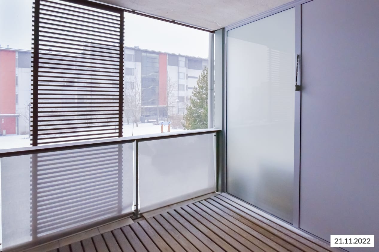 The homes are equipped with a heat recovery forced air ventilation systems which may be adjusted individually for each home. The balconies of the 45 sqm homes open onto the spacious yard towards the southwest while the 39 sqm homes have balconies opening west on Kaj Franckin aukio square. The balconies have clear-glass railings fitted with blinds.