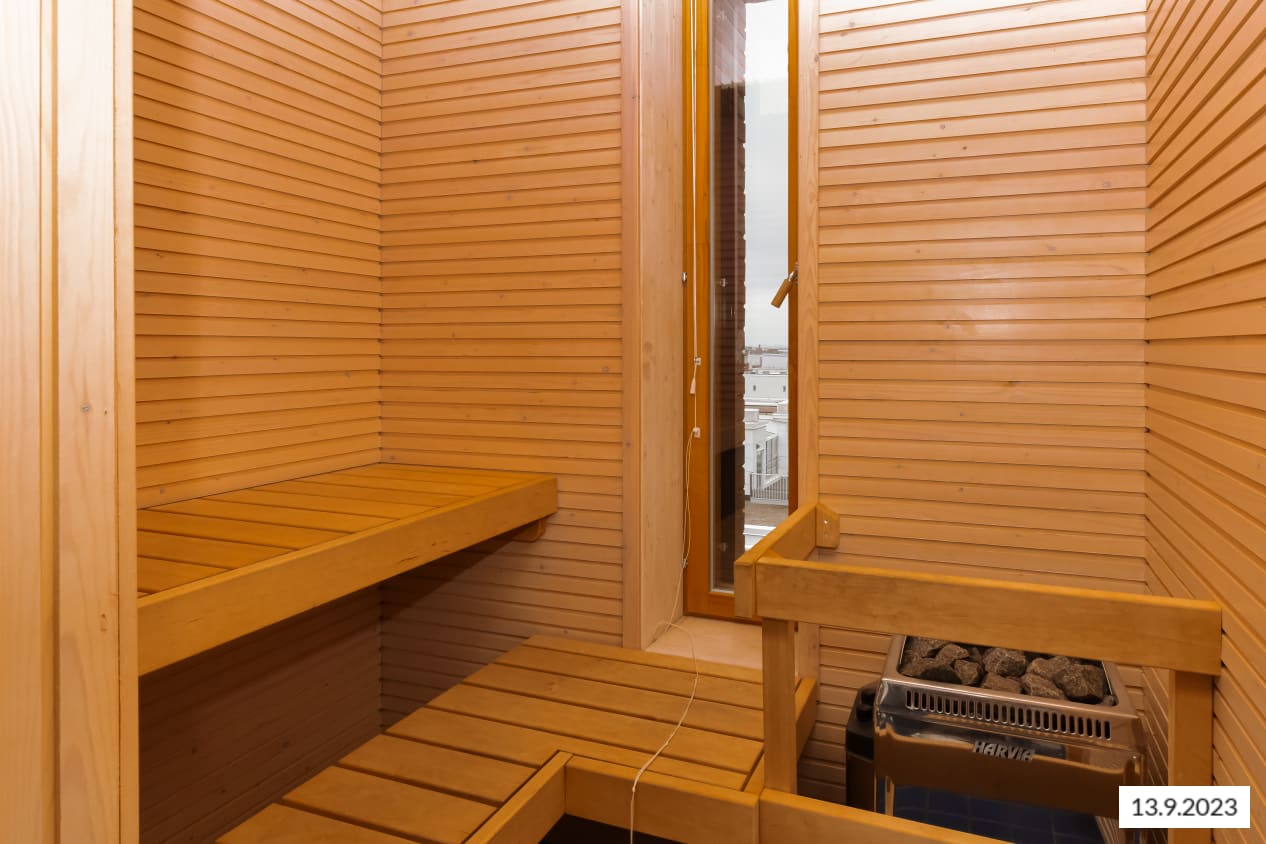 The building’s sauna section and clubroom are on floor 8 while the laundry room is on the ground level.
