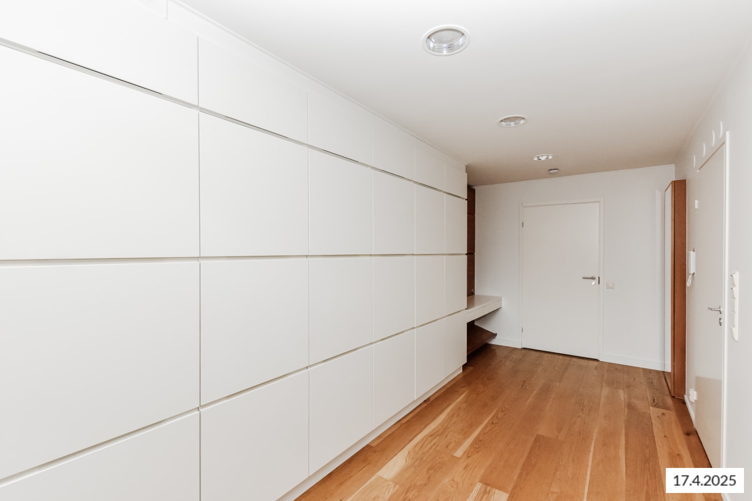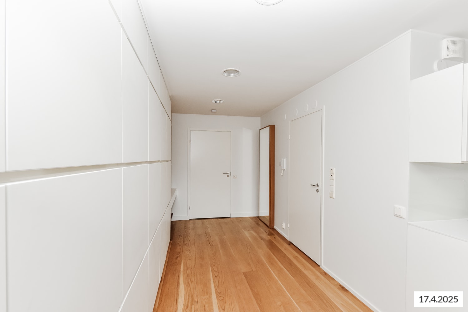 The materials and fittings of this unique home are high-quality. The floors are parquet and the bathroom is tiled. The kitchen is equipped with an integrated dishwasher, hob, built-in oven, and stylish cooling appliances.