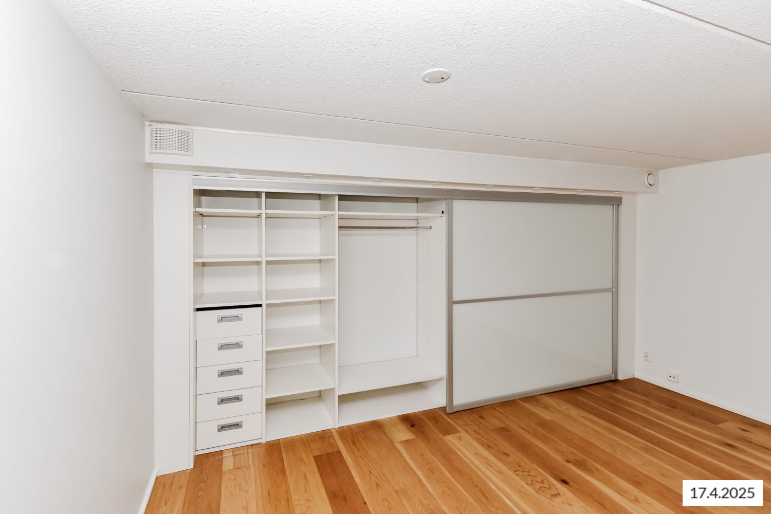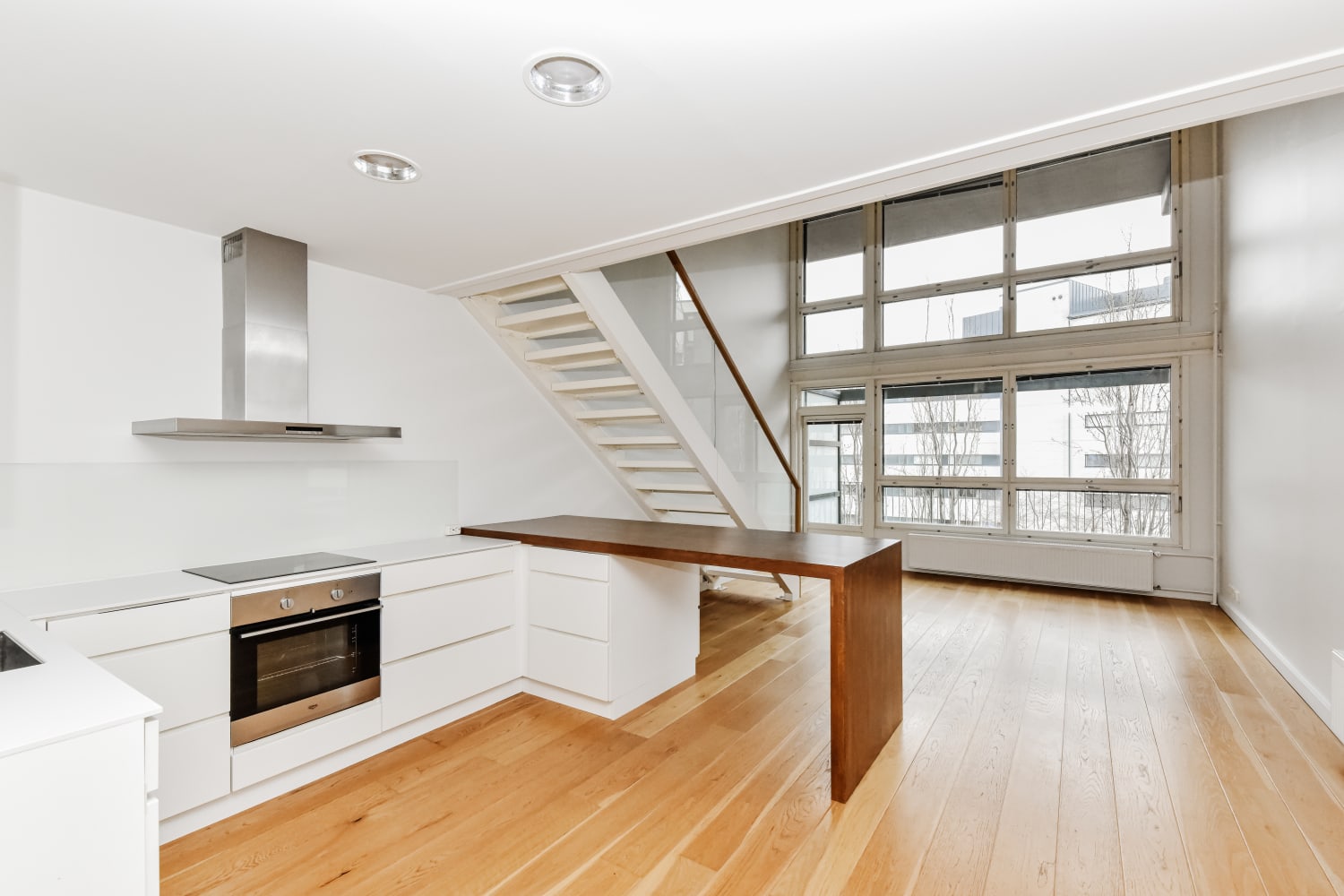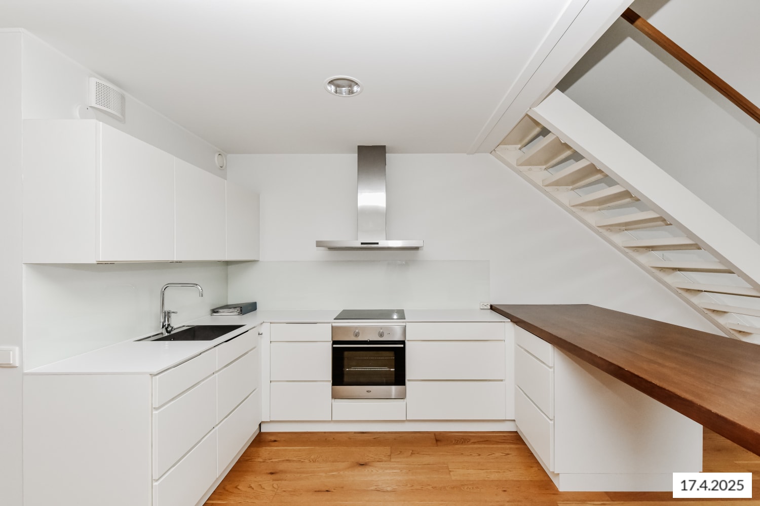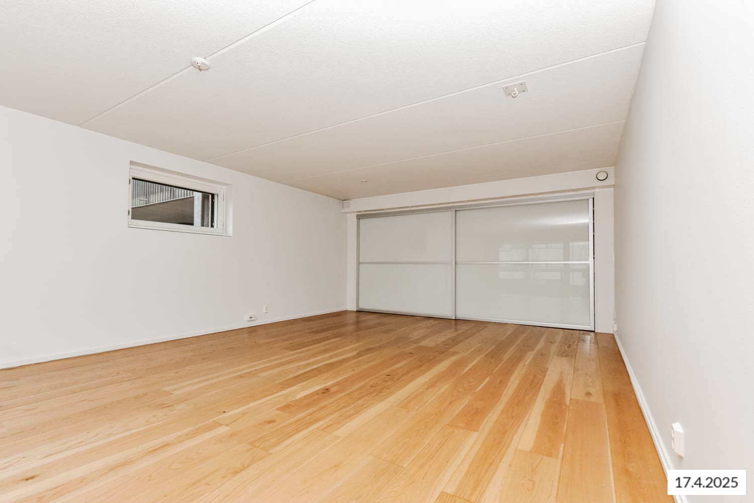 Rare opportunity! This ruggedly modern apartment building located at the north end of Arabianranta houses unique loft homes. The ceiling height of this home is approximately five metres, featuring a distinctive mezzanine level. The sense of space and openness is enhanced by floor-to-ceiling windows covering the entire wall.