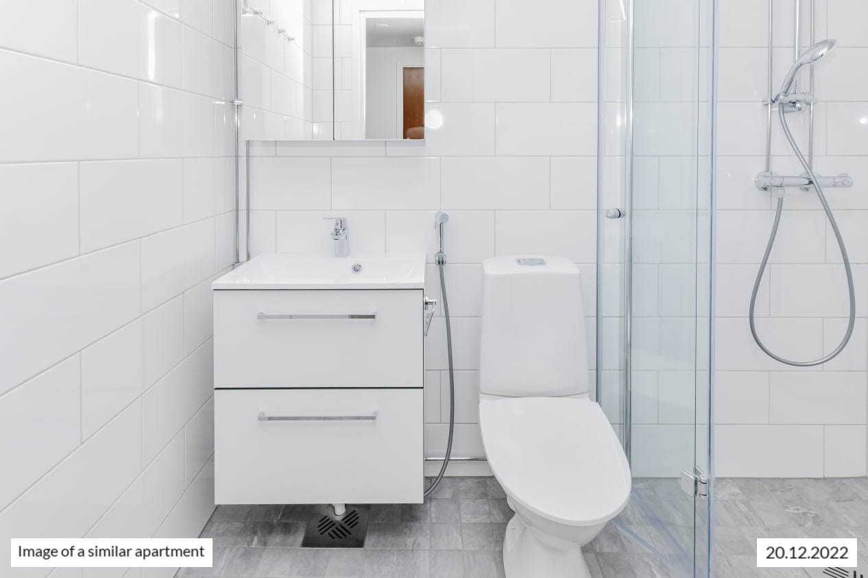 Everything is new in the bathroom, too, and there is also space for your washing machine.