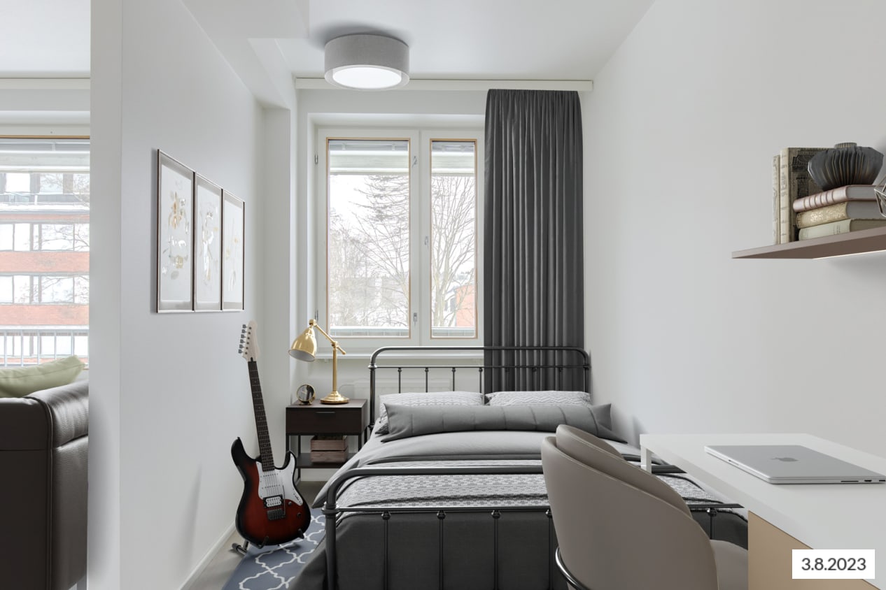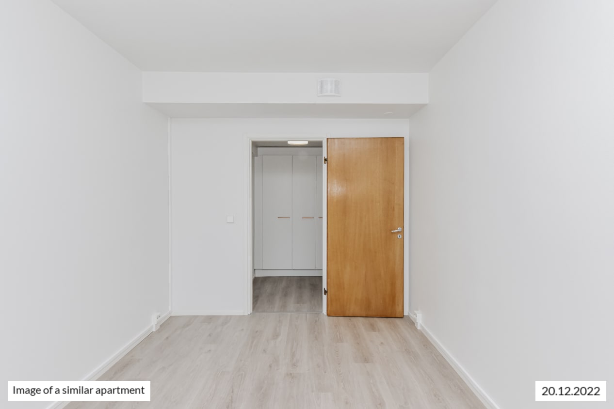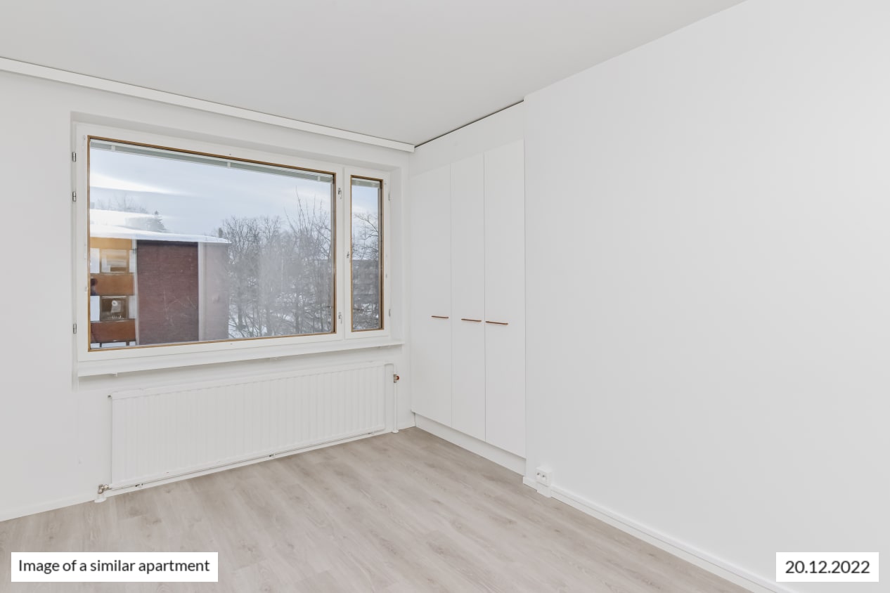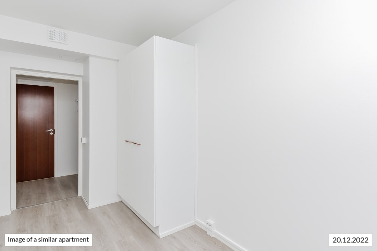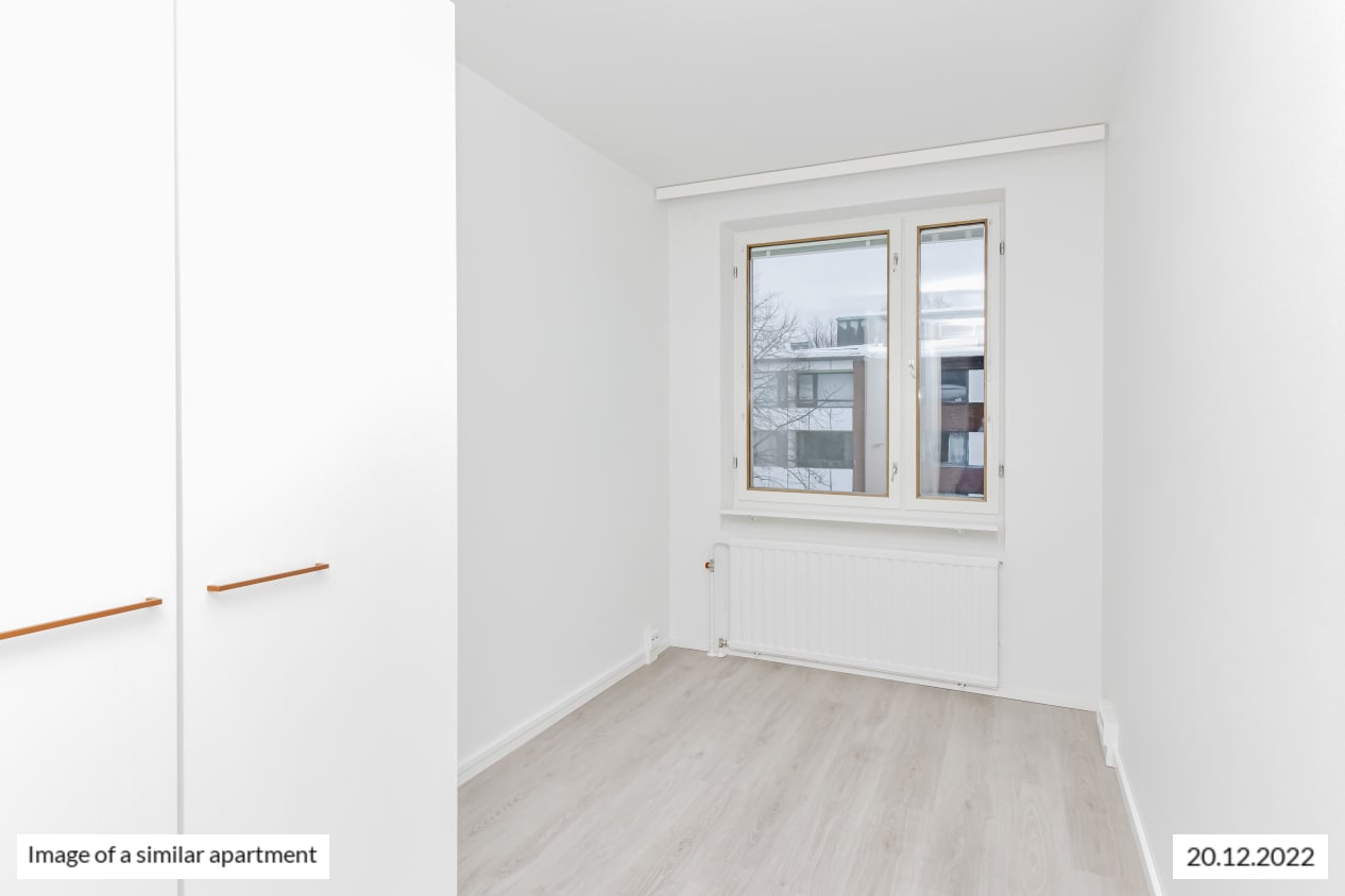 The bedrooms face east, overlooking Ansaritie street. Everyday luxury is provided by the walk-in closet at the entrance, with plenty of storage for your things.