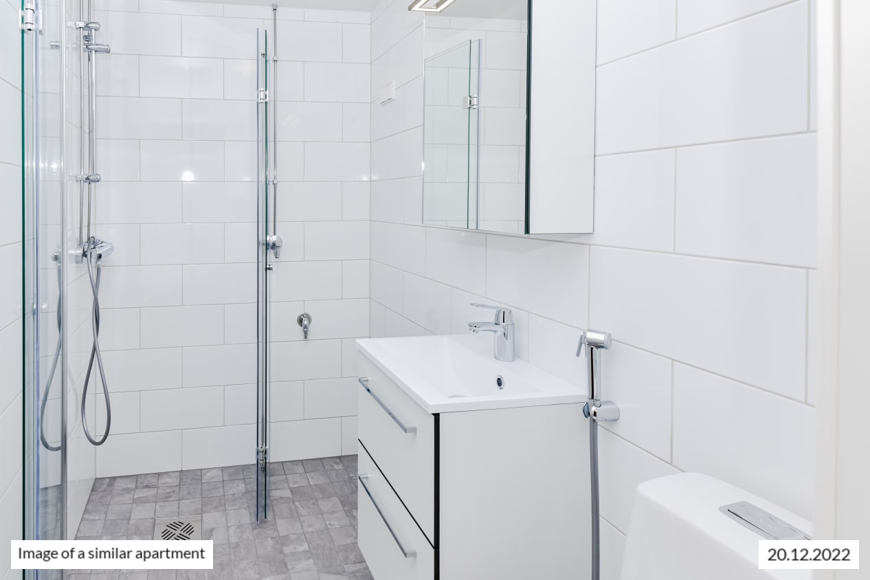 Everything is new in the bathroom, too, and there is also space for your washing machine.