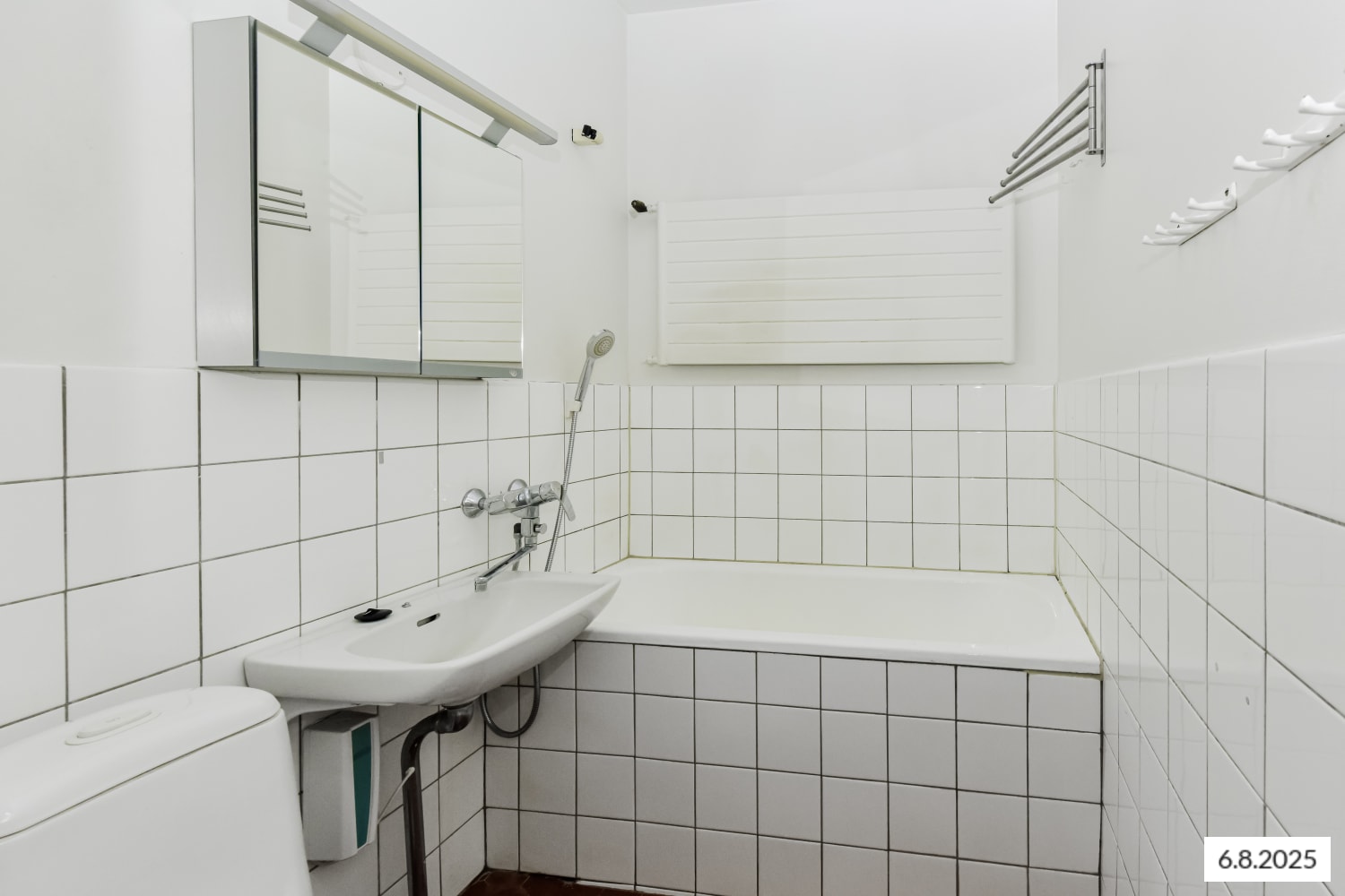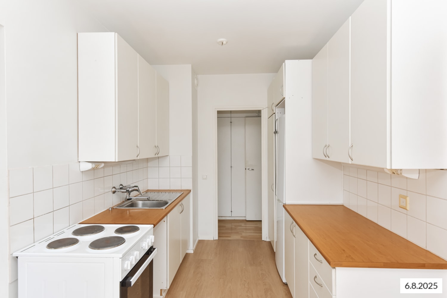 With its well-spaced buildings, leafy and attractive Etelä-Haaga is a nice place to live. The homes on Isonnevantie are traditional 1960s units with the big windows typical of the era. All homes except for the 49 sqm one-bedroom have balconies.