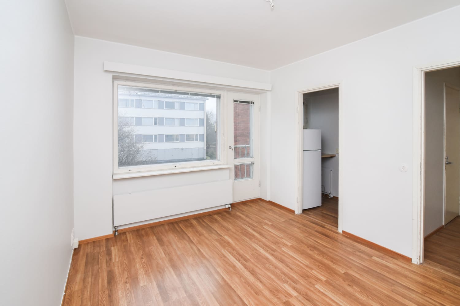 A juliet balcony facing southeast and a large window in the living room provide a spacious feel to this peaceful small apartment. Located within walking distance of Huopalahti train station, this home features a bathroom with a window and bathtub, and a bright kitchenette.