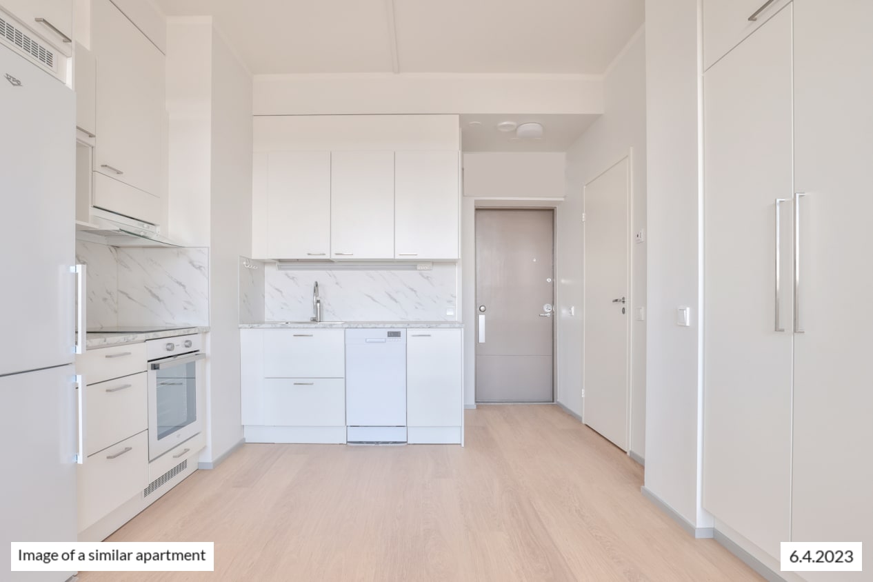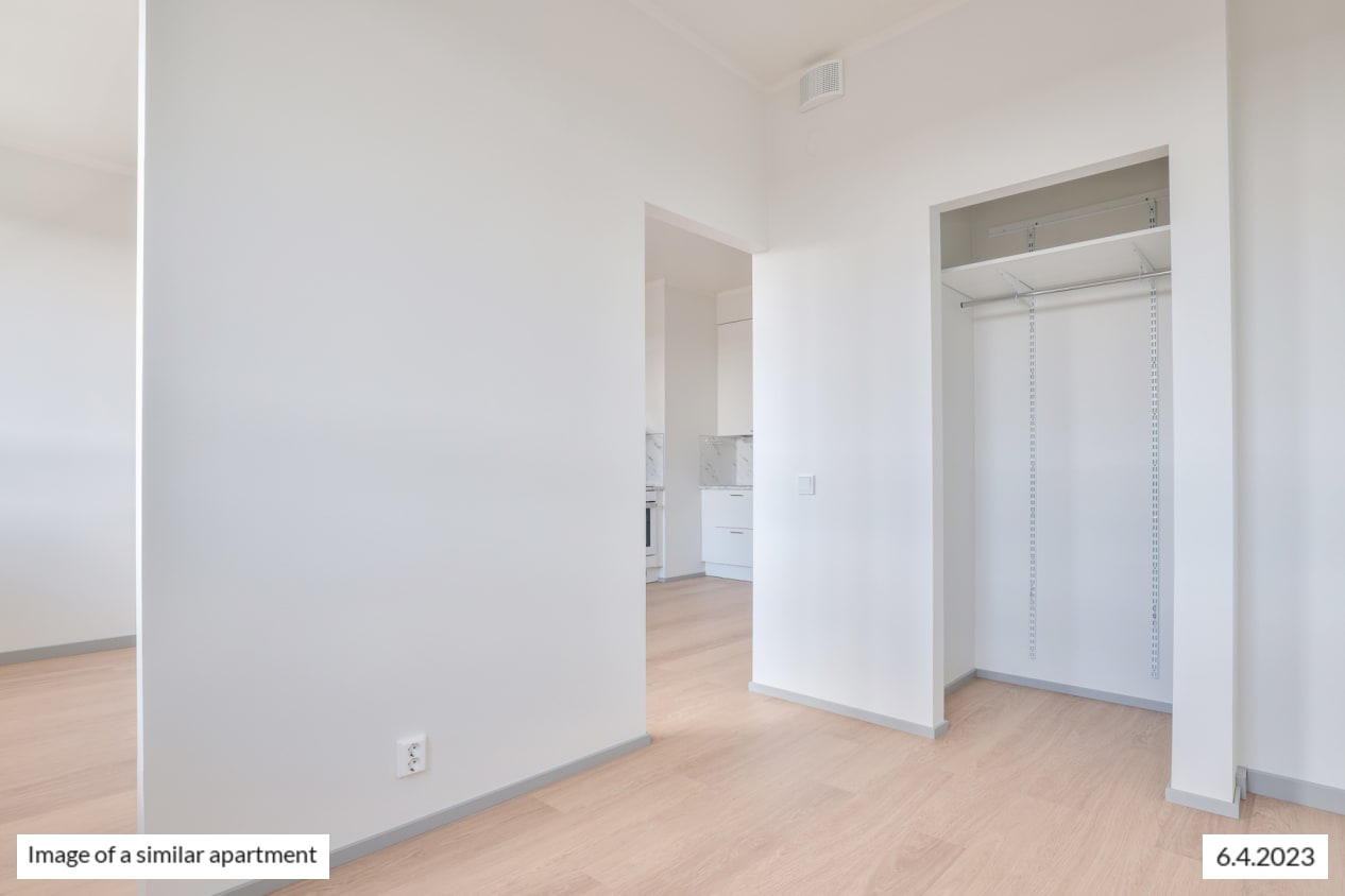 The practical layout offers many options for making the home your own with furnishings to your taste. There is storage in both the entrance hallway and kitchen. The walk-in closet accessible from the bedroom adds a touch of everyday luxury.