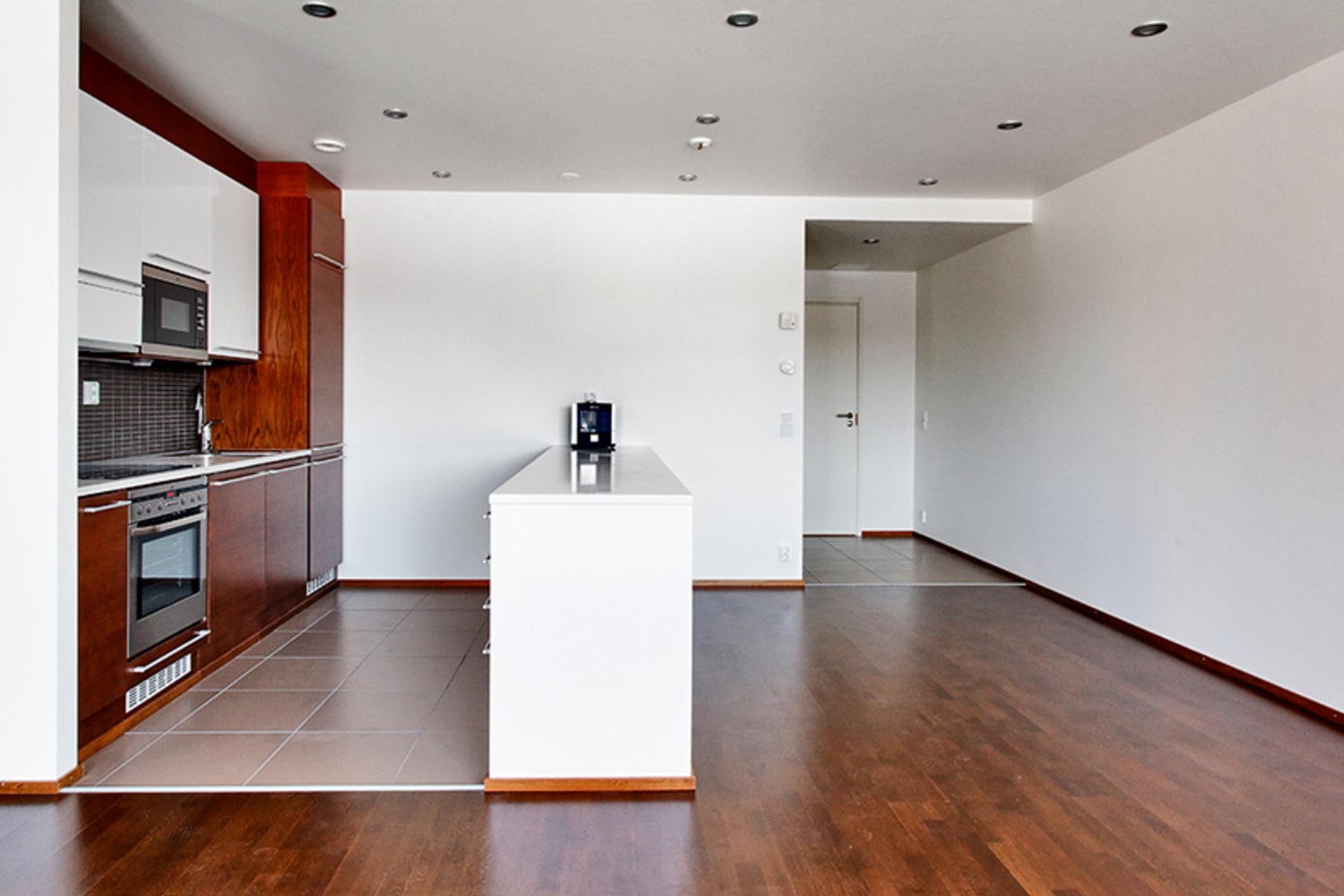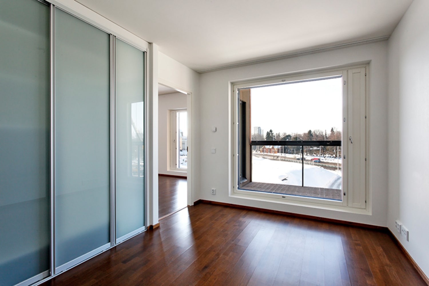 The units are done in three different colour schemes ranging from clean white to warm brown and edgy terracotta. The floors are parquet, with tiling in the kitchens and hallways. The bathrooms are also tiled and most of the units feature a private sauna. The storage solutions in all units are truly elegant and roomy. The balconies are glassed in and for the time being, the inner courtyard-facing units offer spectacular views of the sea (once the entire block is completed, the inner courtyard will provide a haven of peace in a busy city).