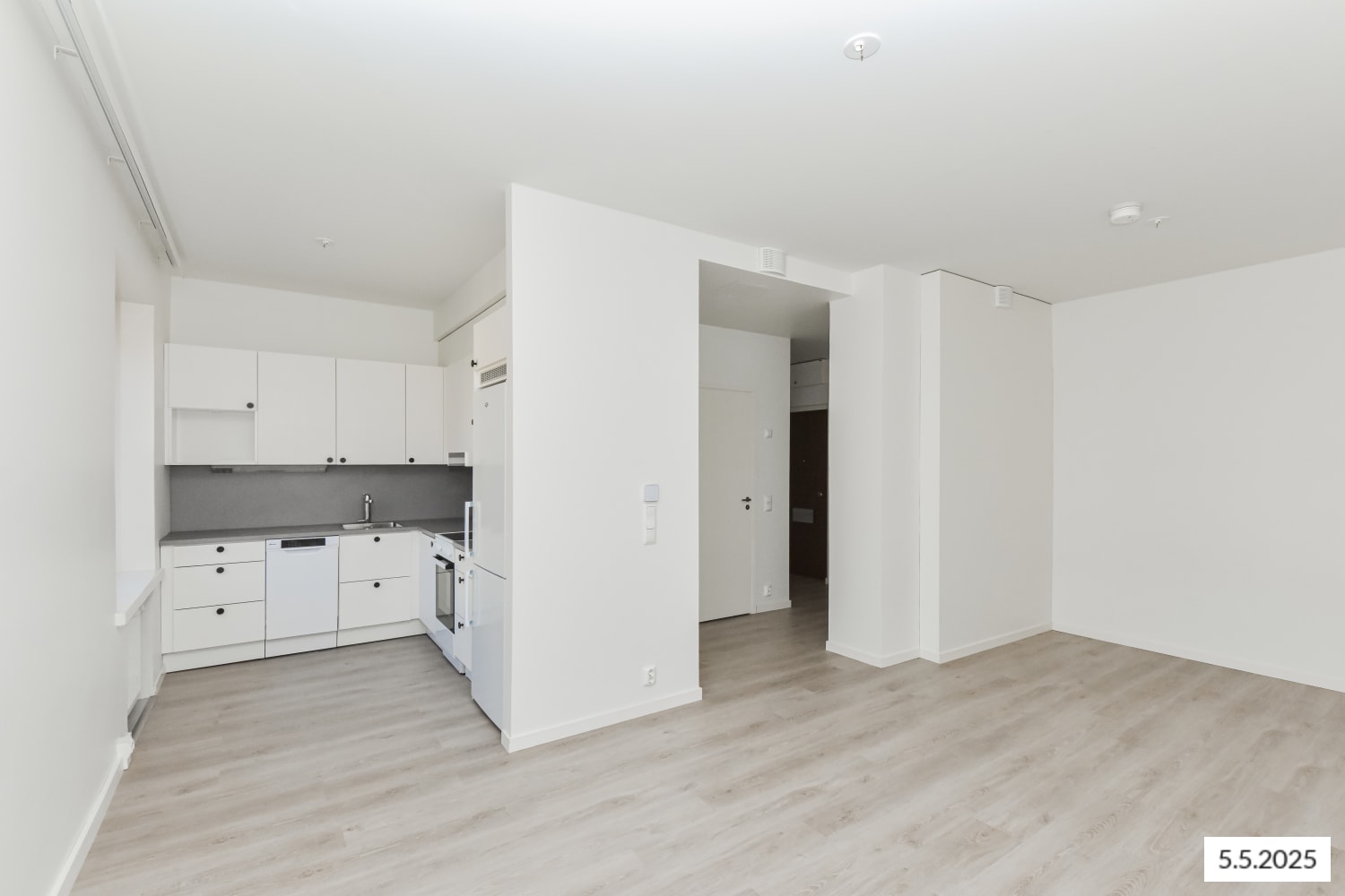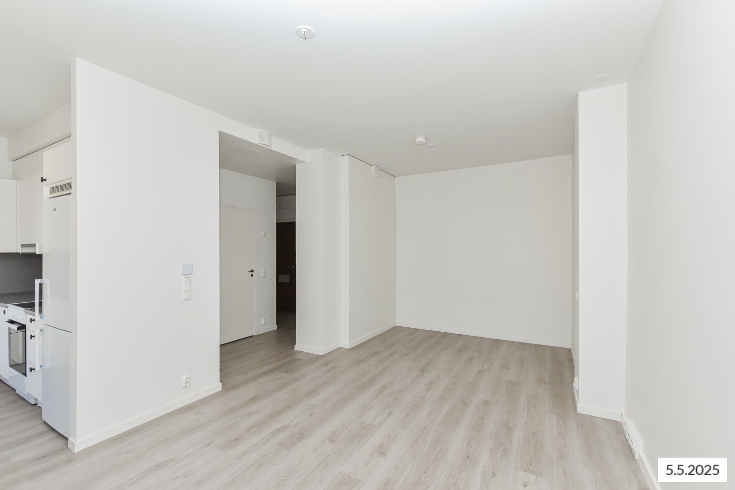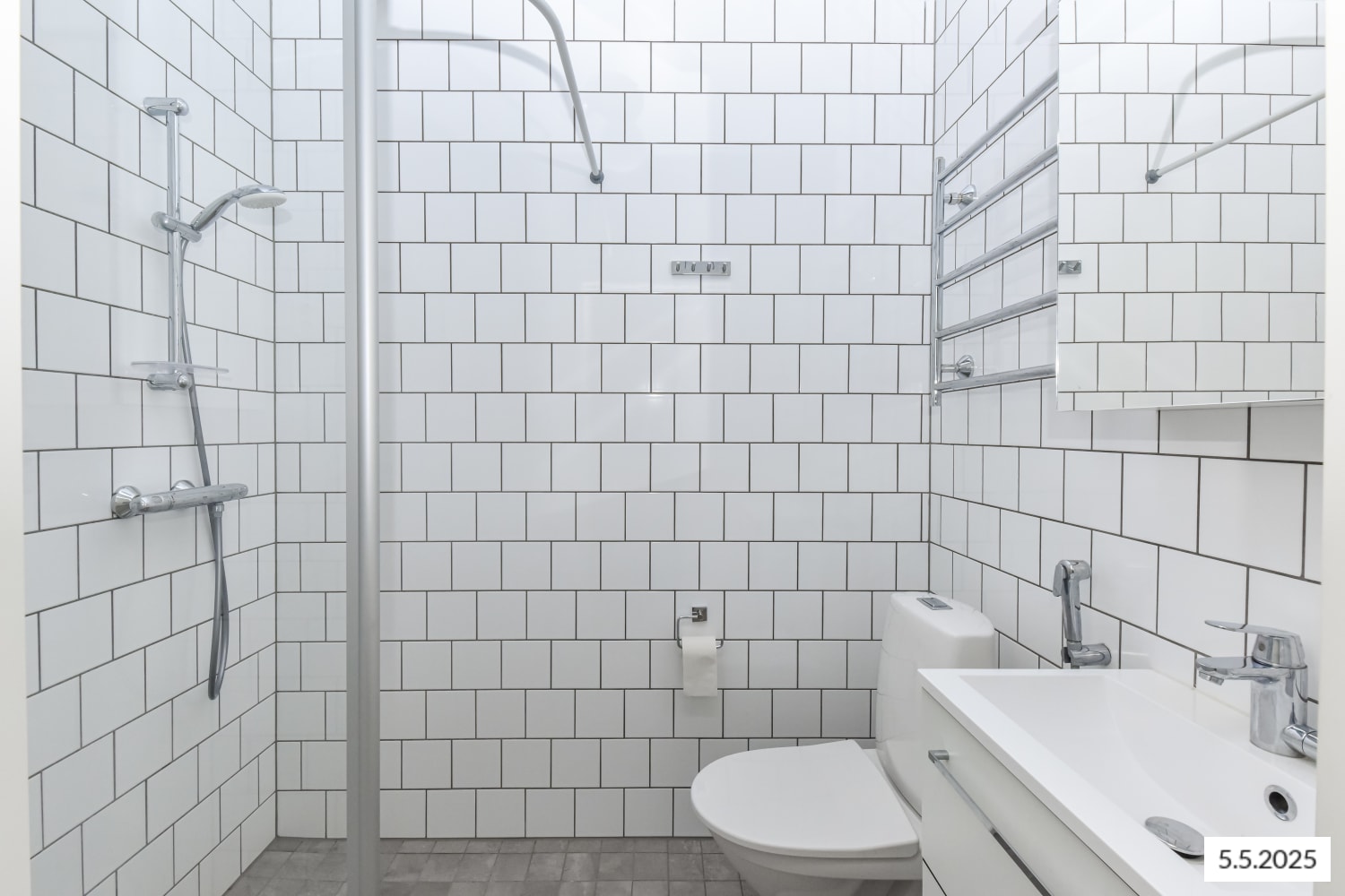 This beautifully renovated studio apartment from 2021 offers views towards the inner courtyard of the block. The double-pane windows and sturdy window sills are reminiscent of the bygone era of the functionalist building. The modern kitchen and living room merge into a bright living area that you can easily furnish to match your taste. The home's surface materials are light and timeless. The floor is bleached oak plank laminate and the walls are painted white.