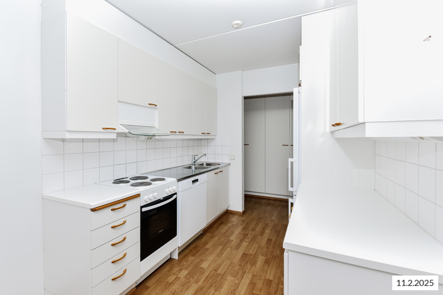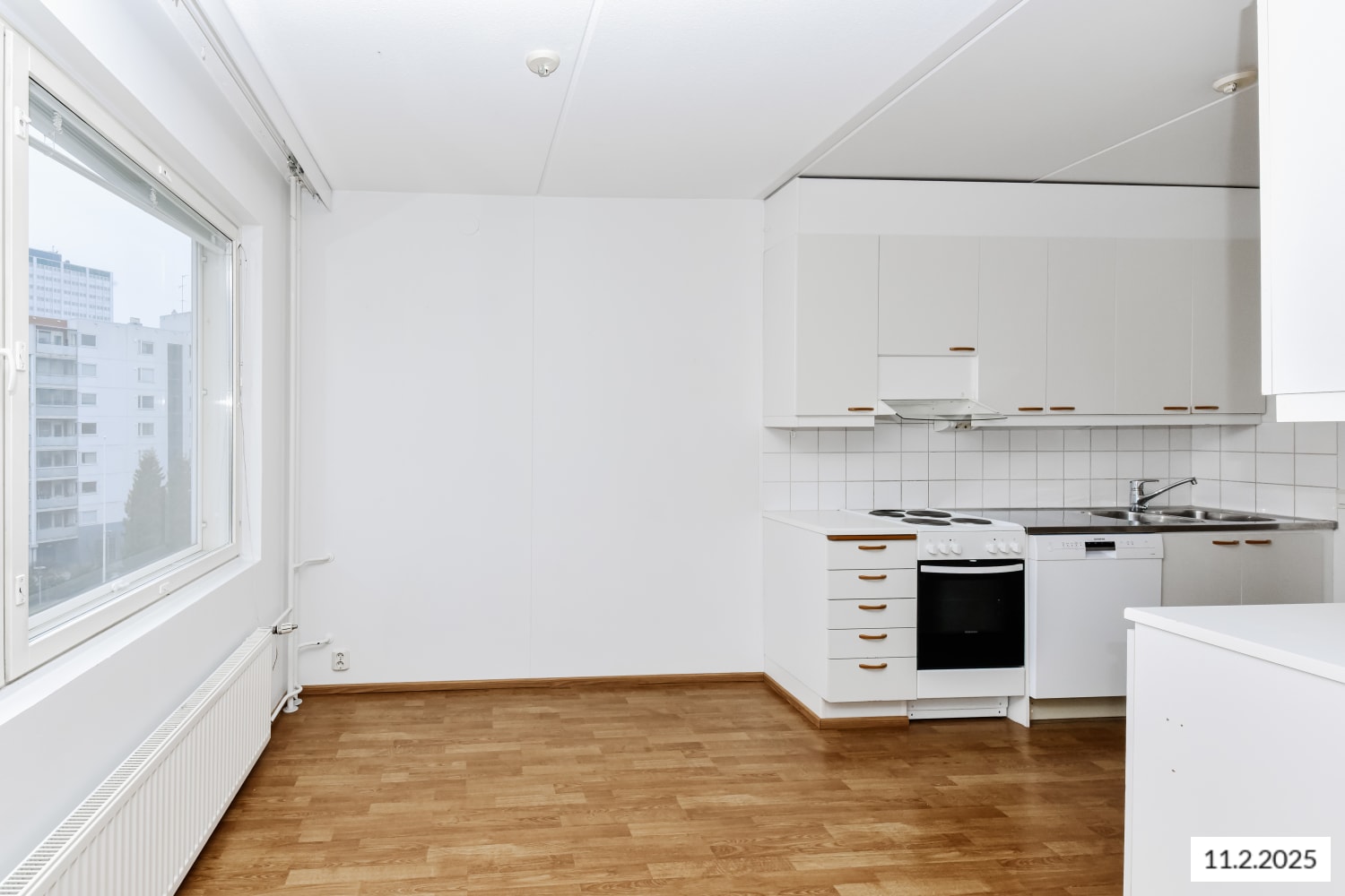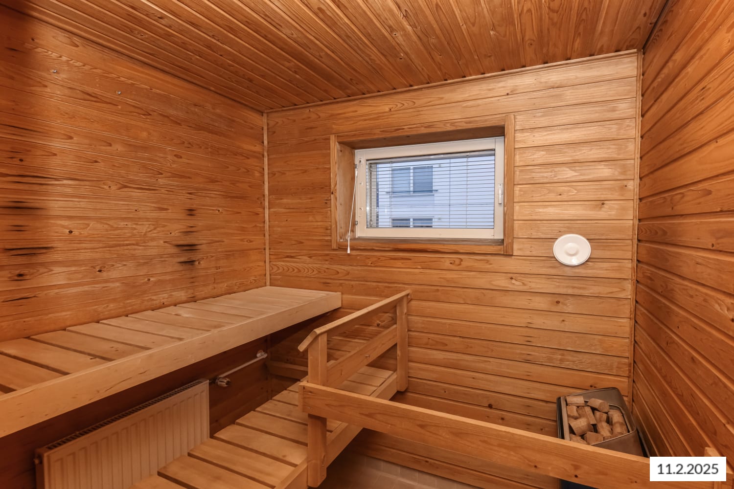 This two-bedroom apartment in a prime location boasts a smart layout and bright interiors. The expansive living room connects seamlessly with the kitchen and dining area, creating an open and inviting space. The balcony provides additional light and serves as a cozy extra room during the summer months. The kitchen is equipped with a dishwasher, fridge-freezer, oven, and traditional stovetop. Residents will also enjoy the private sauna, perfect for unwinding after a long day.