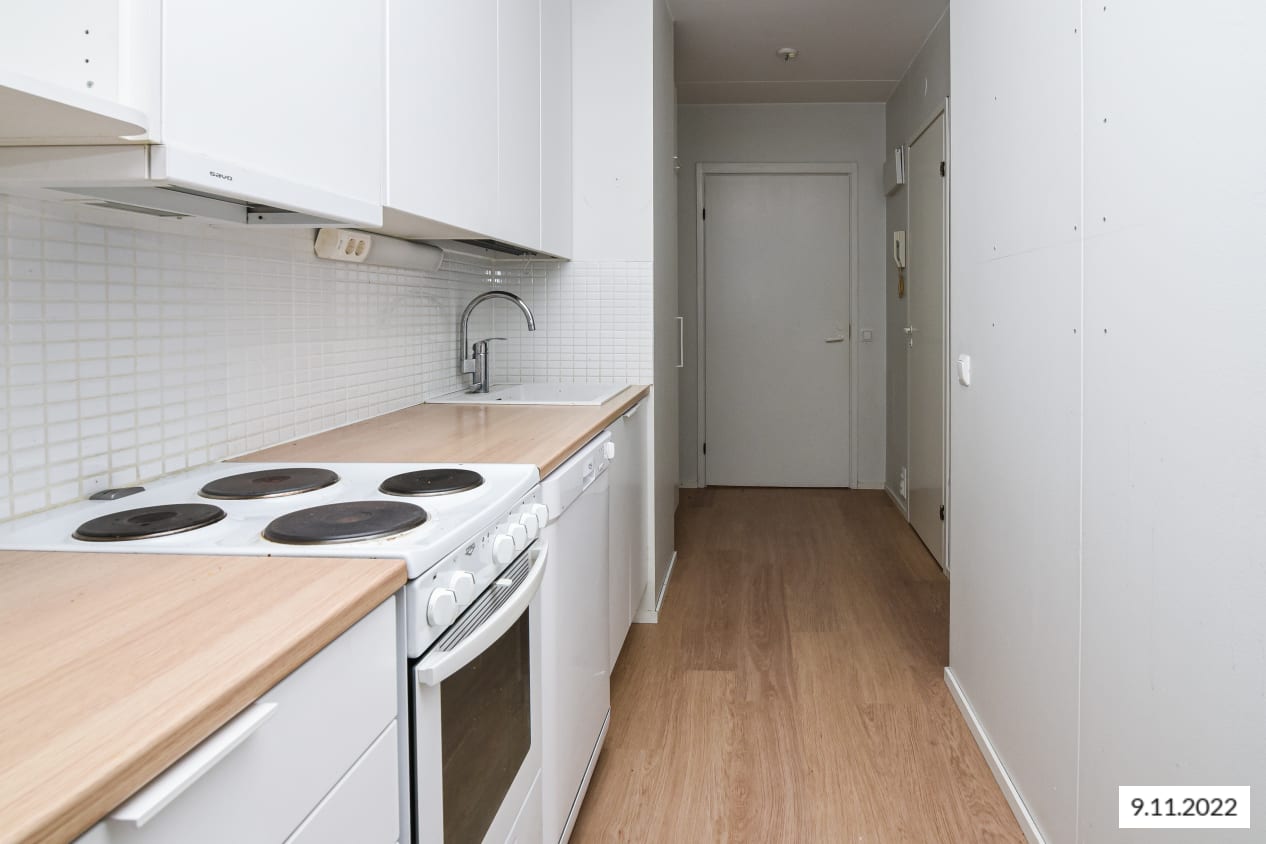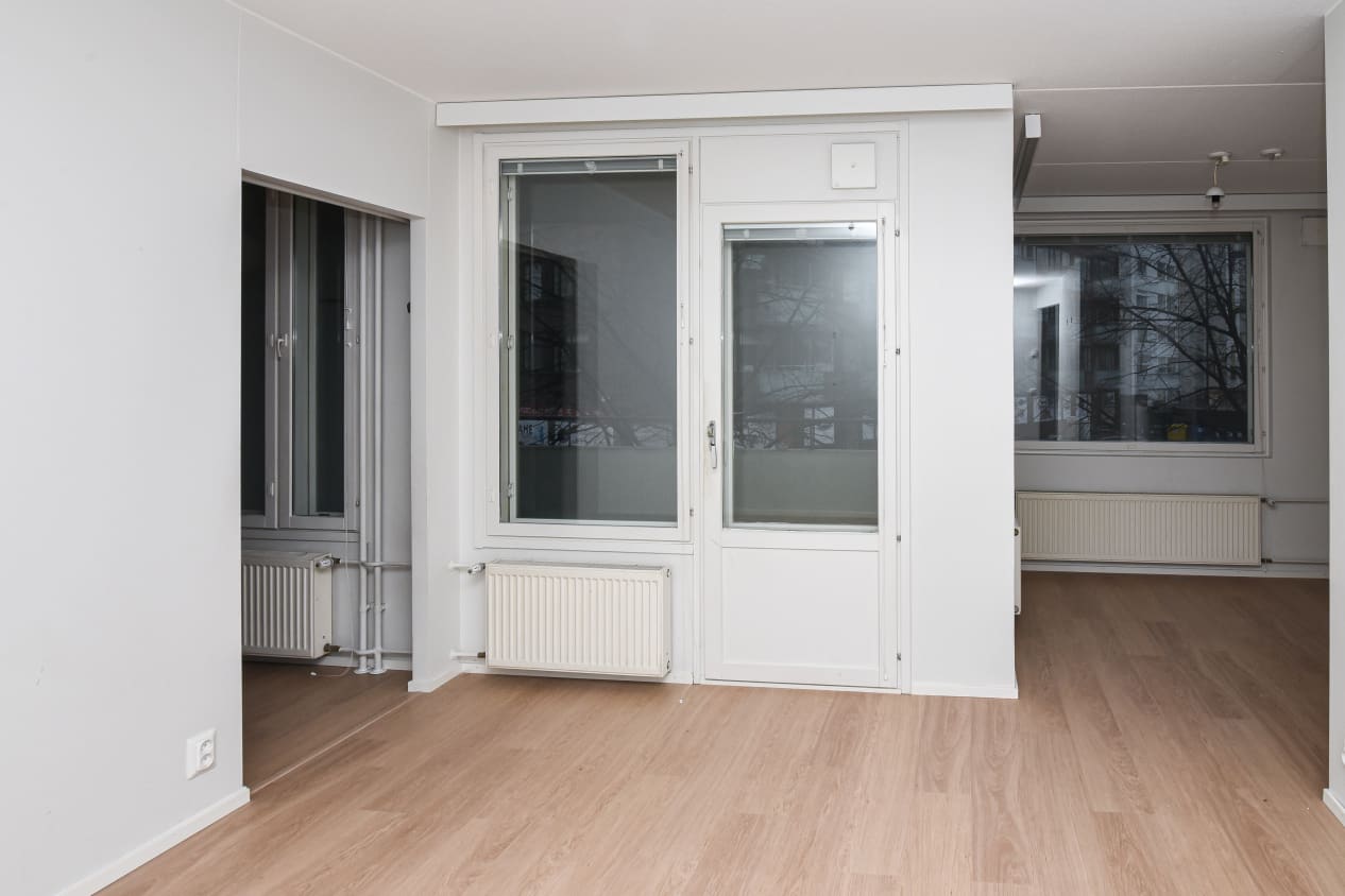 This seven-storey building with a lift in Näkinkuja street has 79 classy homes for a variety of life situations from studios to spacious three-bedroom apartments. All apartments have a balcony and some also have a private sauna. There is a fantastic view from the top-floor homes over the roofs of Hakaniemi. The apartment layouts are clean and easy to furnish and the décor scheme is light in colour.