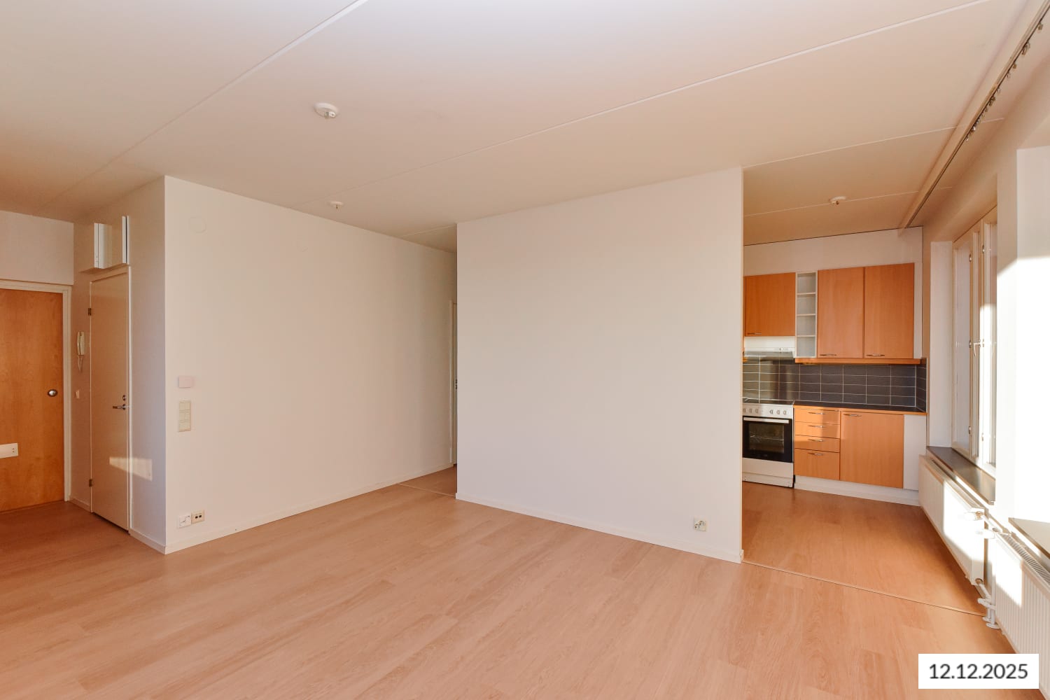 This inviting two-bedroom home features a clear layout, with the kitchen separated from the living room by a partition wall. During the summer, the living area extends to a private balcony. Adding a touch of luxury to everyday life is your own sauna, while the separate WC adds convenience. As a corner apartment with windows on three sides, this home is filled with natural light.