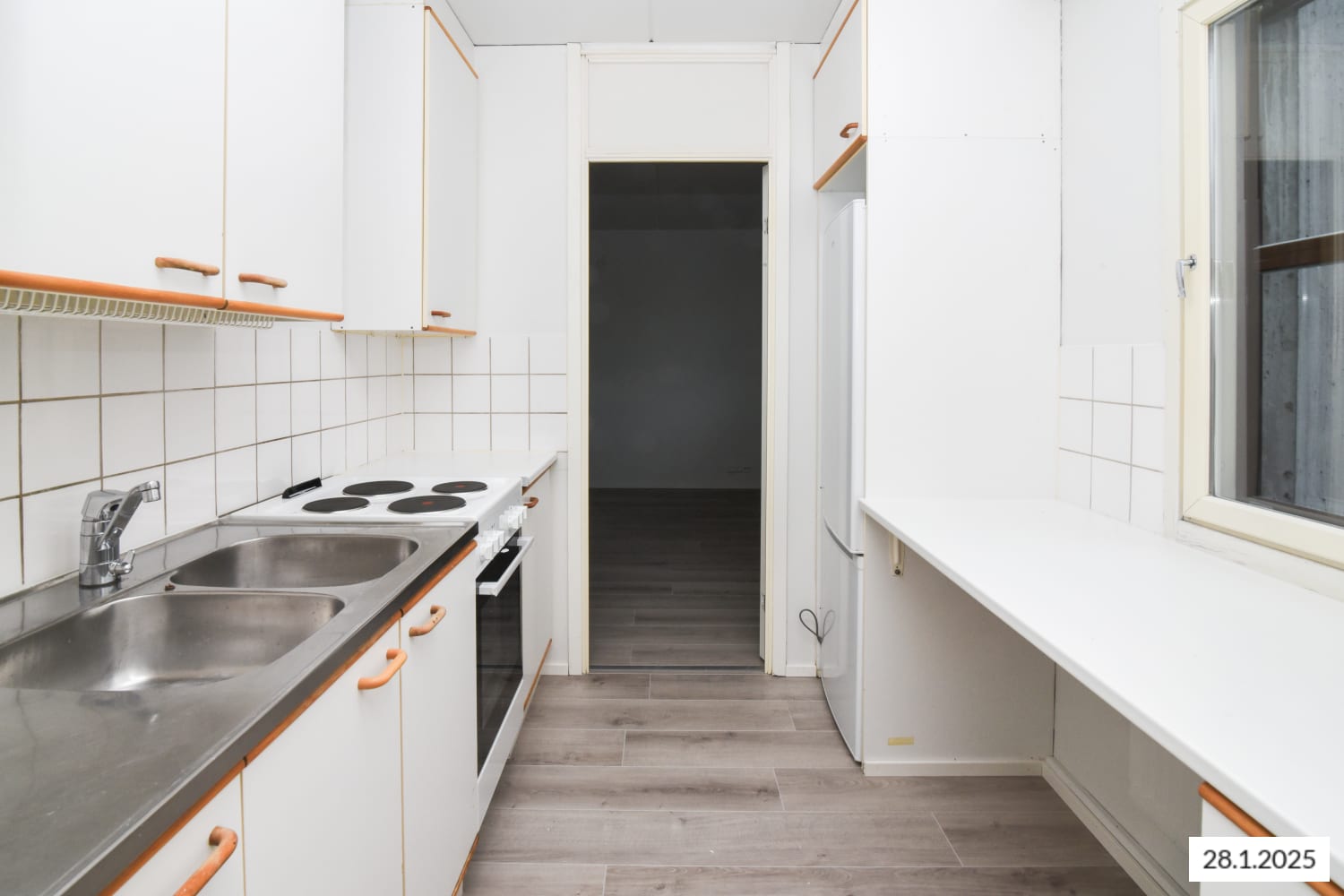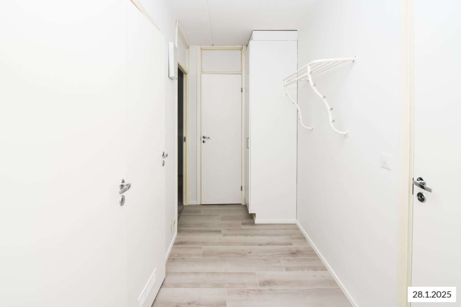 The kitchen is equipped with a traditional stove and refrigerator. The bathroom has space for a washing machine. A place for clean laundry can be found in the wardrobe room in the hallway.
