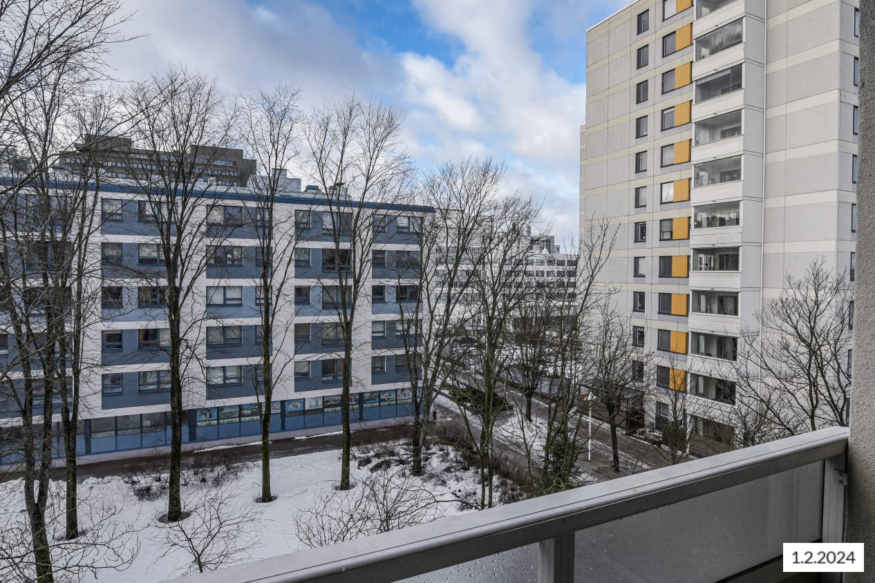 The apartments larger than a studio in this building located by a lush natural park have a balcony facing southwest or south. The bathrooms have space for a washing machine and some have a bathtub.