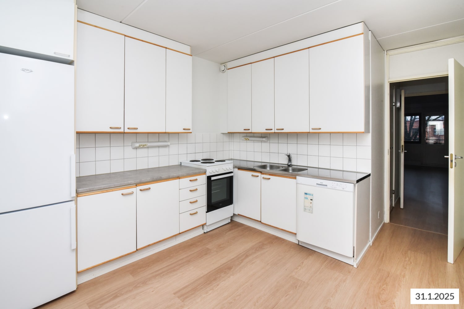 Located near the Itäkeskus shopping centre, this beautiful one-bedroom home on the top floor offers a clear and easily furnishable layout. Every room in this rental home is accessible directly from the entrance hall, and the living room opens onto a generously sized balcony, perfect for enjoying breakfast on a summer morning. The floors in the living areas are laminate.