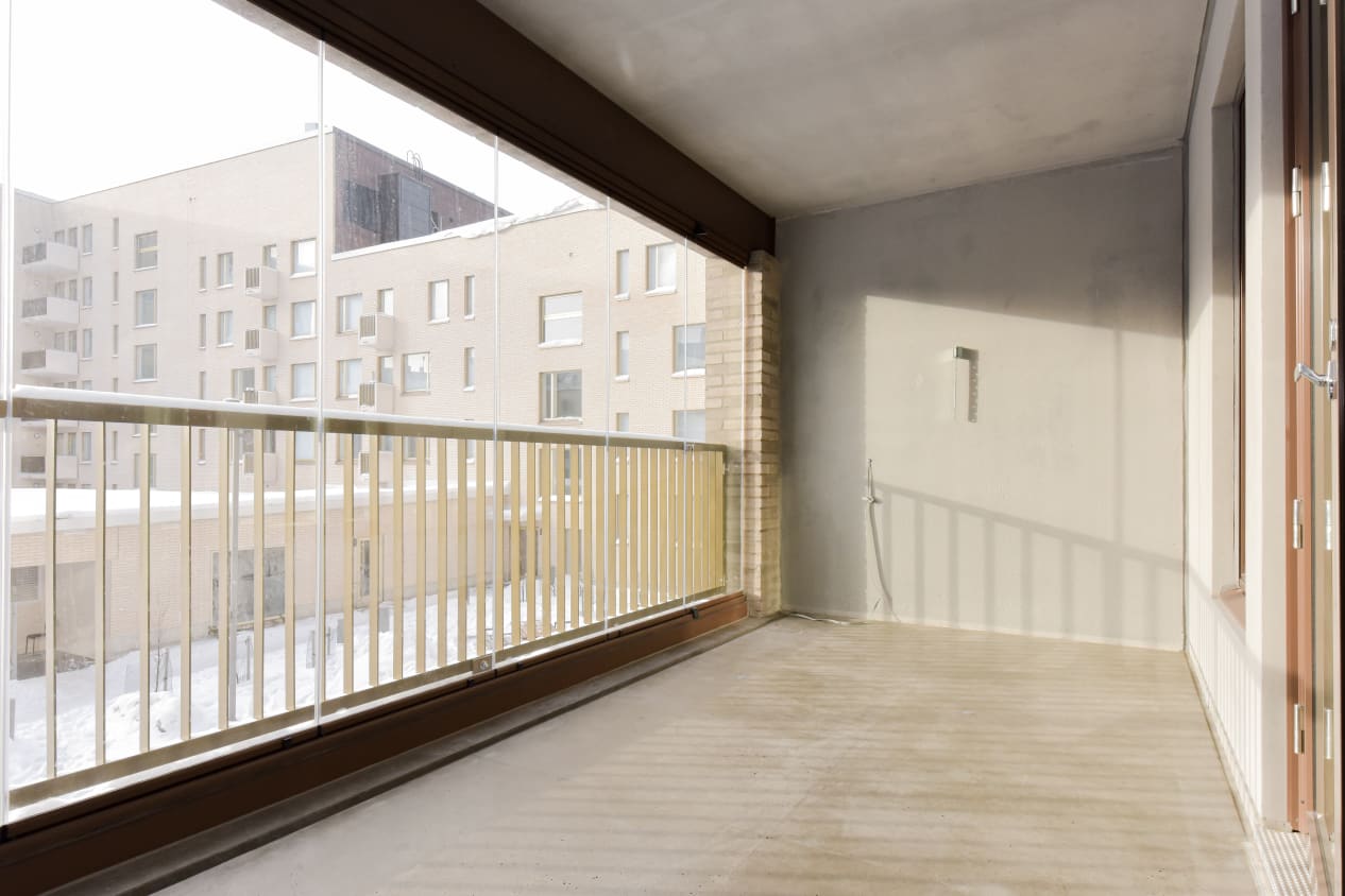 This bright one-bedroom home in Jätkäsaari enchants with its clear layout and modern appearance. The sense of space is enhanced by tall windows and a south-facing glazed balcony where you can enjoy the sun well into autumn. The bedroom is hidden behind two sliding doors, with convenient access on either side of the bed.