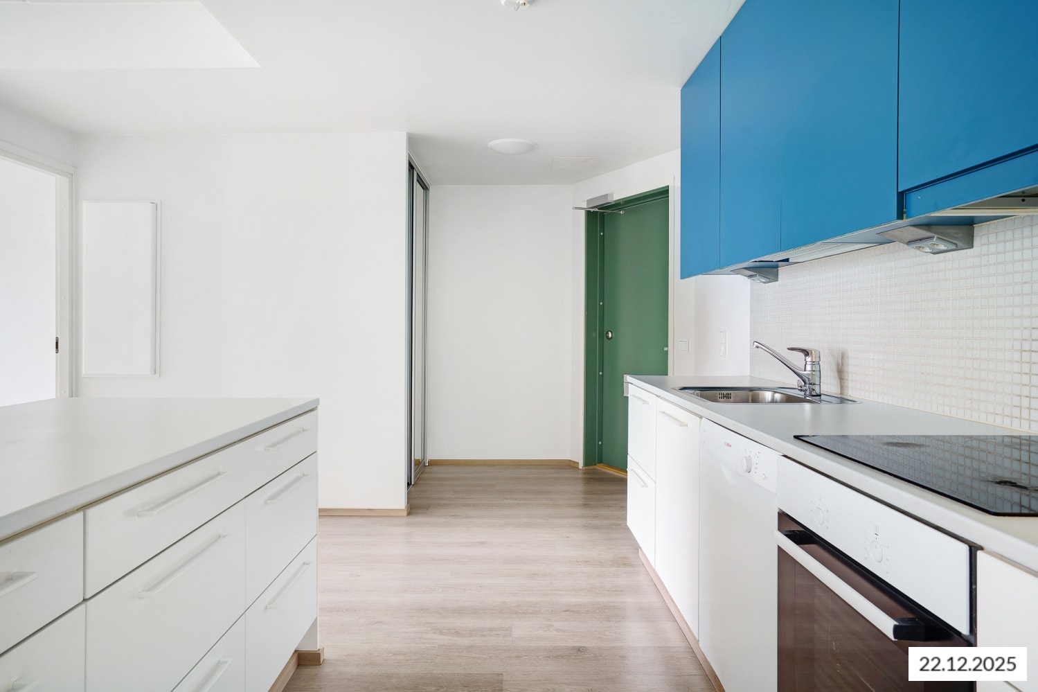 The well-defined home's living room and open kitchen create a spacious, unified living area that's easy to furnish to your liking. Relax in the sauna of your own home at the end of the day, and enjoy afternoon coffee on the glazed balcony.