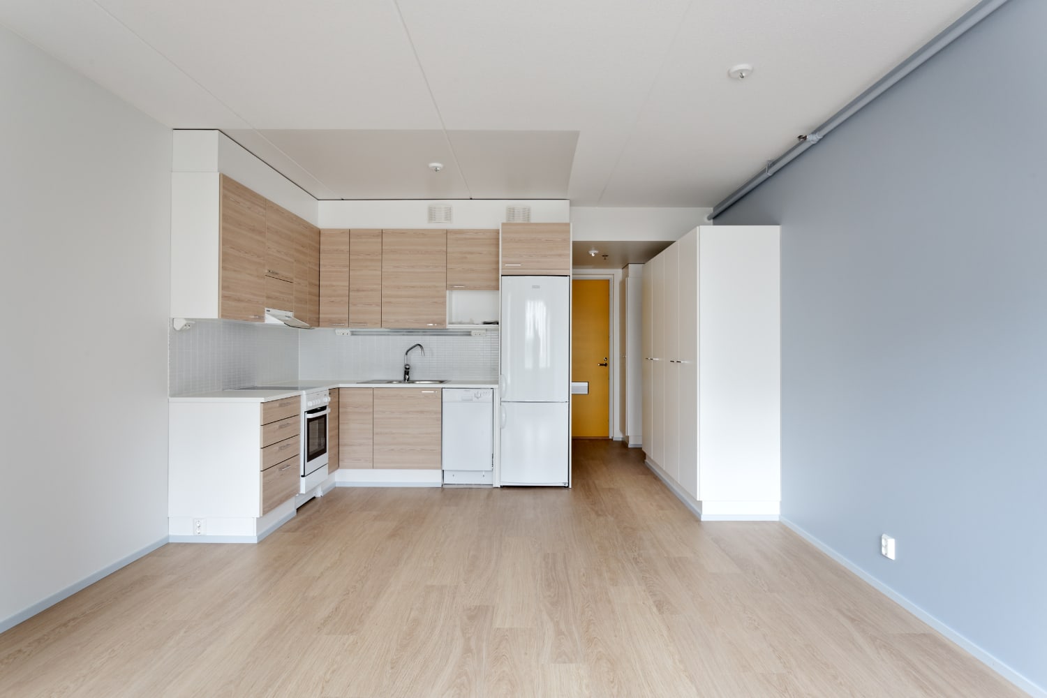 The apartments at Junonkatu 4 in the Sörnäistenranta area of Kalasatama exude cosy and classical elegance. The three professionally selected design motifs highlight an understated Scandinavian flair and quality. The common areas are also delightful: lobby with glass ceiling, panoramic lift, penthouse sauna section with rooftop terrace, and courtyard area shared by the entire block make Junonkatu 4 the building of your dreams. All homes feature laminate flooring, tiled bathrooms and kitchens equipped with a ceramic cooker, dishwasher and 1-2 cold appliances.