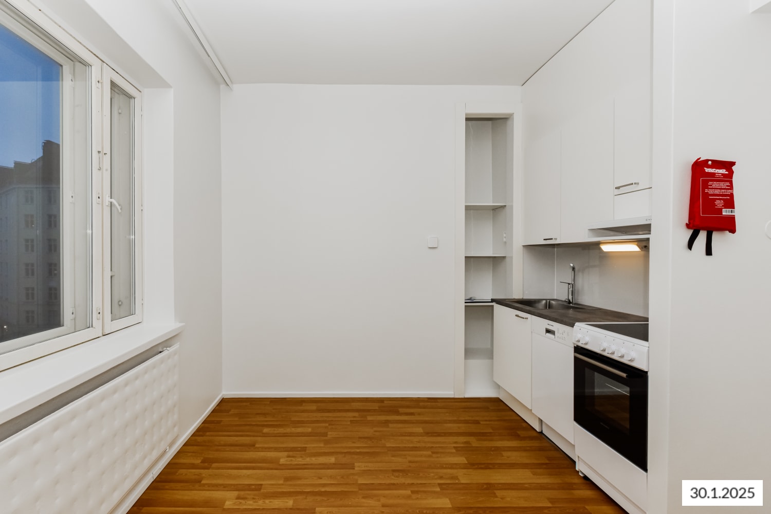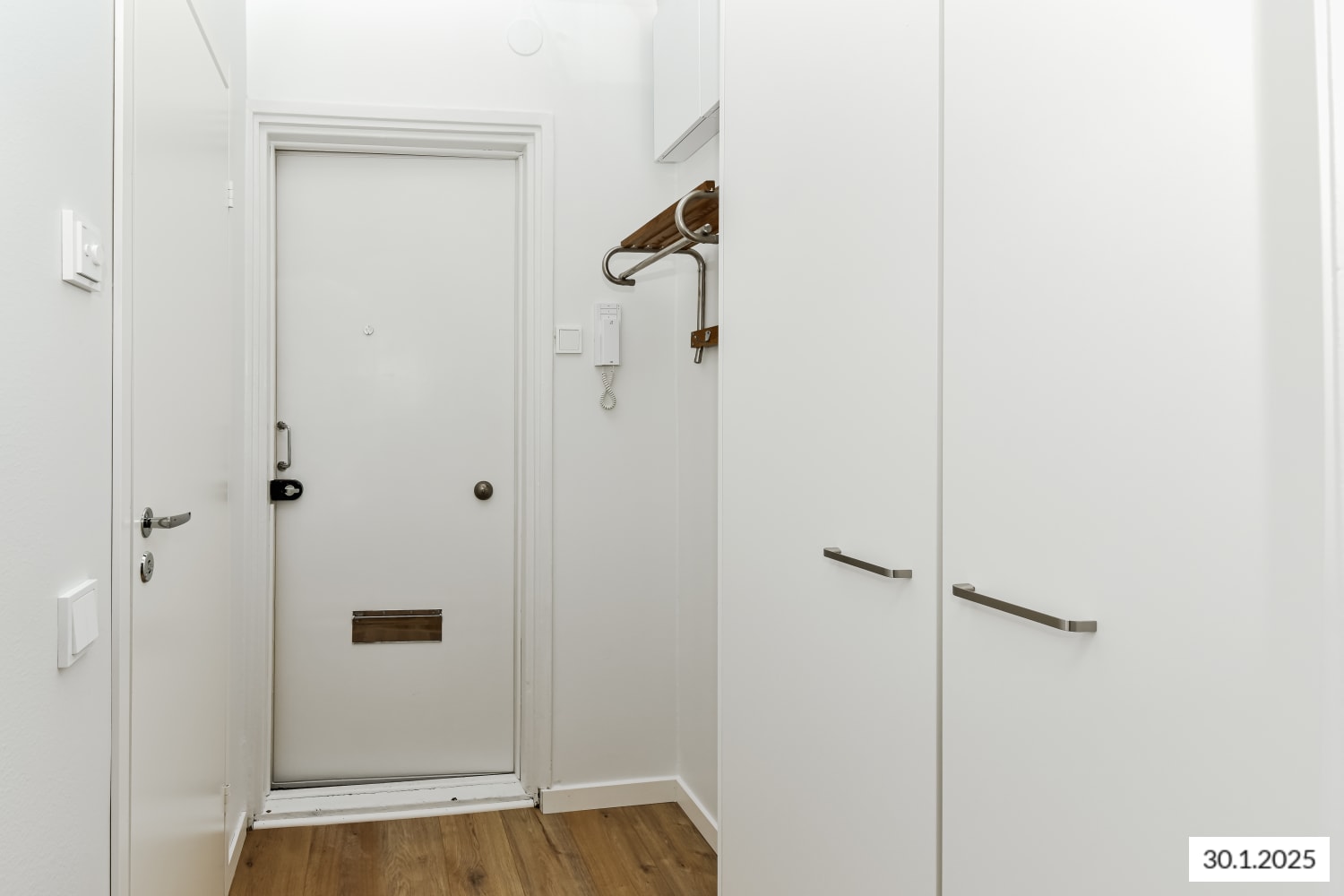 This charming and well-kept small home is located near the beautiful Torkkelinmäki, close to local amenities and excellent transport connections. The green, park-like view from the window towards Torkkelinmäki adds a sense of space to the living area. In this efficiently designed studio, everything is within easy reach.