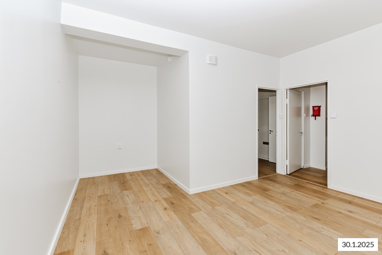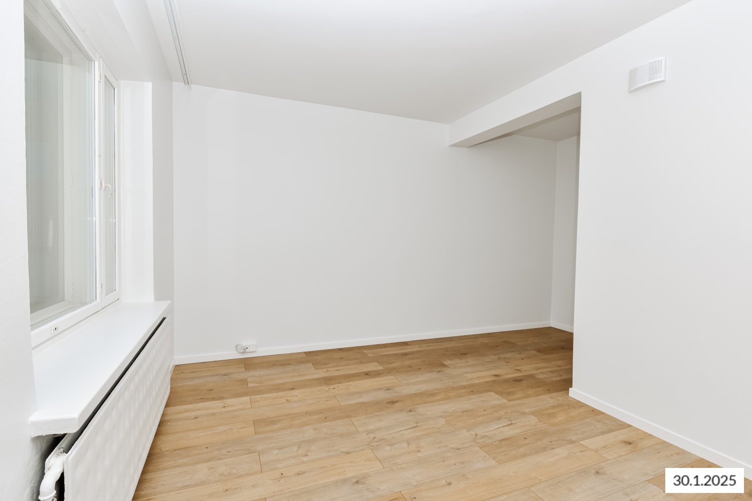 The oak-patterned laminate flooring and the tiled bathroom were updated in the 2024 renovation.
