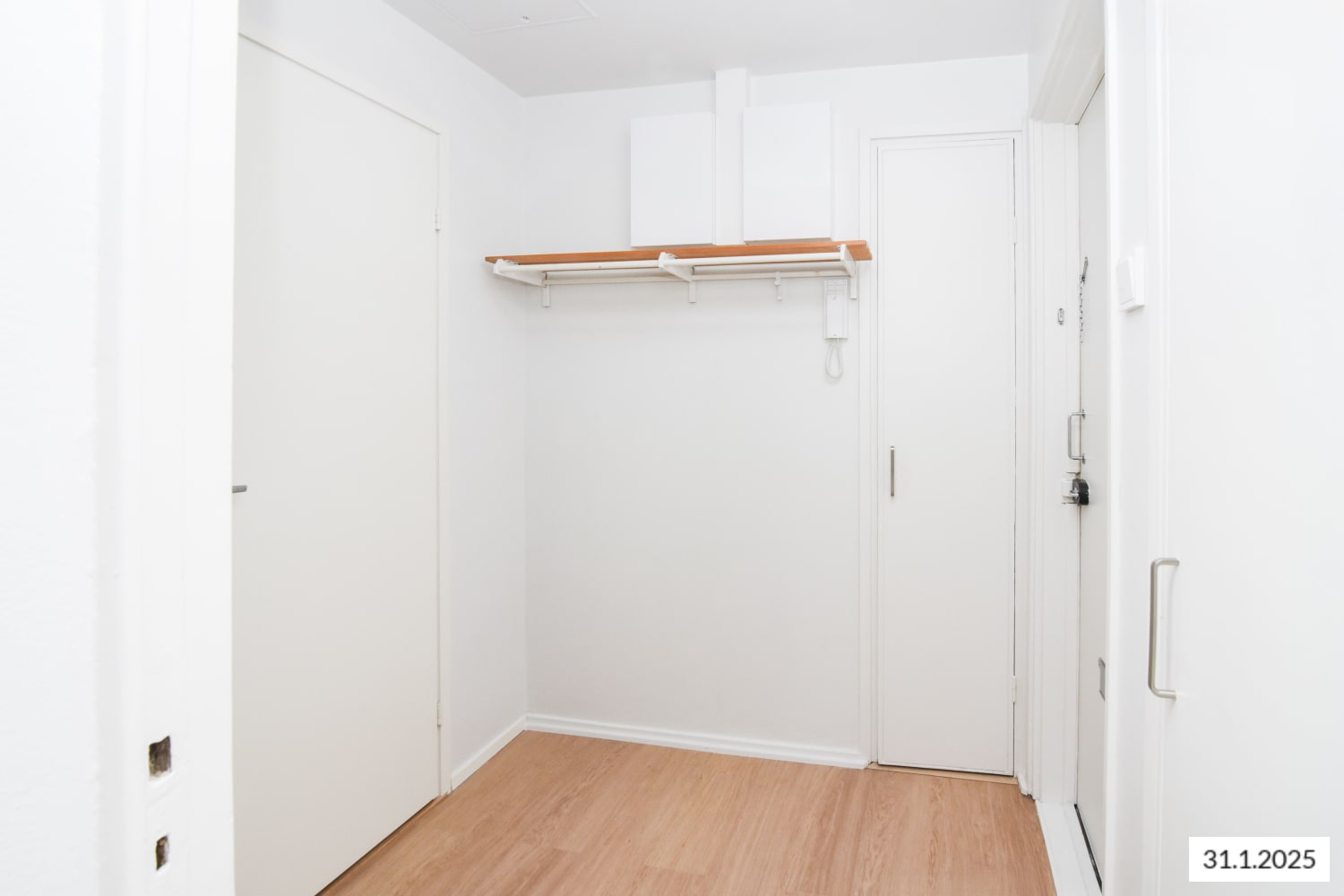 In the heart of Kallio, on the edge of Torkkelinmäki, awaits a cosy and well-kept studio for its new resident. The efficient layout features a living room with an alcove and a compact kitchen, which was fully renovated during the major refurbishment in 2024. The apartment’s windows face the inner courtyard.