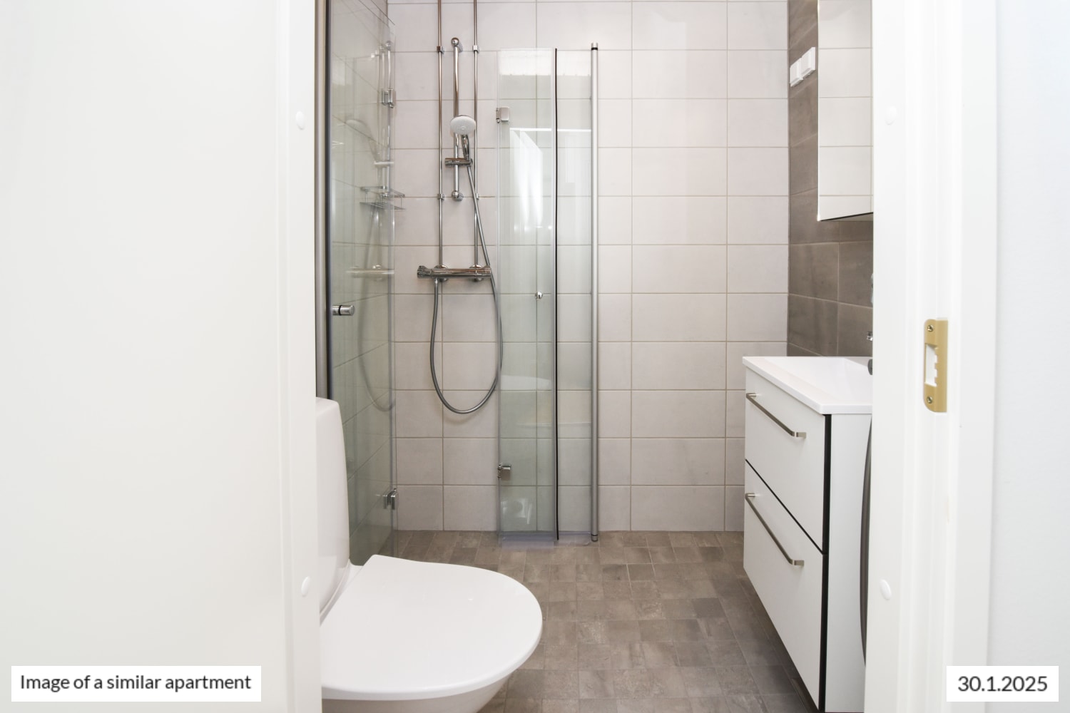 The bathroom, fully renovated in 2024, is tiled, and some bathrooms have space for a washing machine. The wall tiles are white, and the floor and accent tiles are grey, with ceilings made of alder wood. The fresh, light-toned kitchens are equipped with a ceramic induction hob, fridge-freezer, and dishwasher, with a dedicated space for a microwave. The renovated living room floors feature matte-finished oak-patterned laminate. Some floors were not updated during the refurbishment. Storage rooms are available in both the basement and the attic. The building also features a storage room for outdoor equipment, a laundry room, and a drying room. The property is fitted with a mechanical supply and exhaust ventilation system and an intercom system.