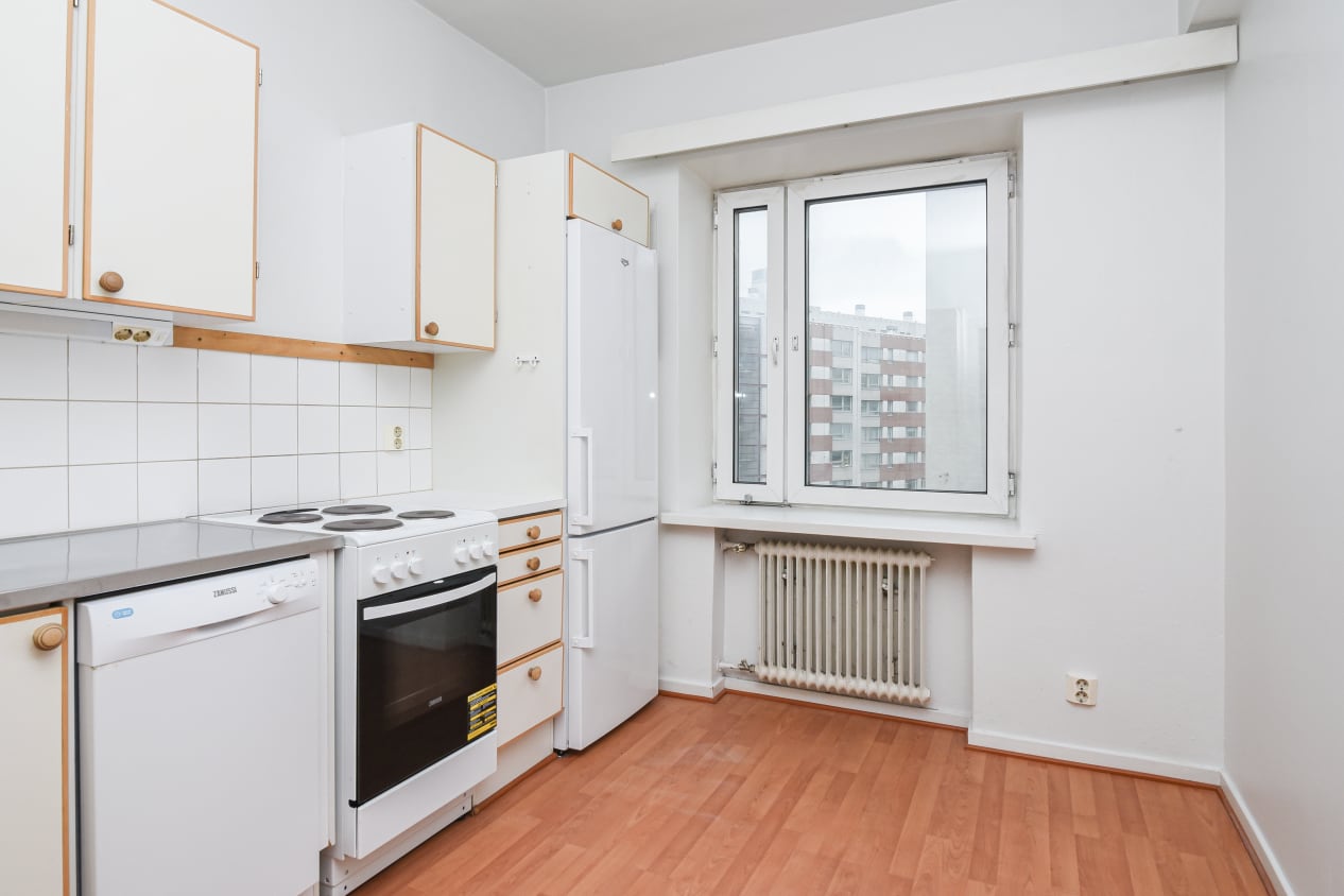 Centrally located within walking distance of Sörnäinen metro station, most of the traditional city homes in this building have balconies and the layouts of some also make them ideal for flat-sharing.