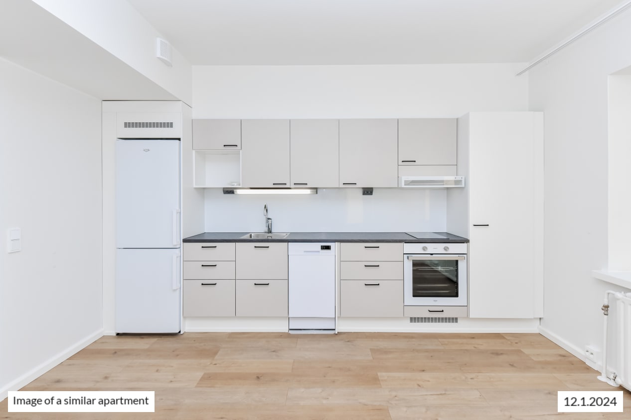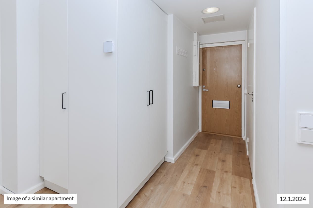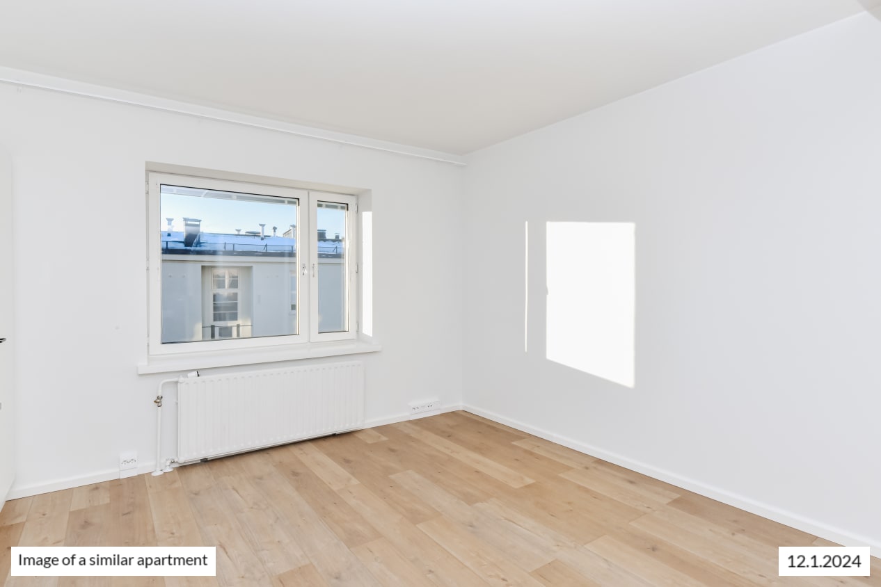 This functional studio home has everything you need and open southwest-facing views towards Hakaniemi. The kitchen space is combined seamlessly with the living area that is easy to furnish just the way you like it. And what would you set on display on the deep, 1950’s windowsills? There is storage space in the entrance hallway as well as the main room. Please notice, that in this apartment the hallway is only 83 cm wide.