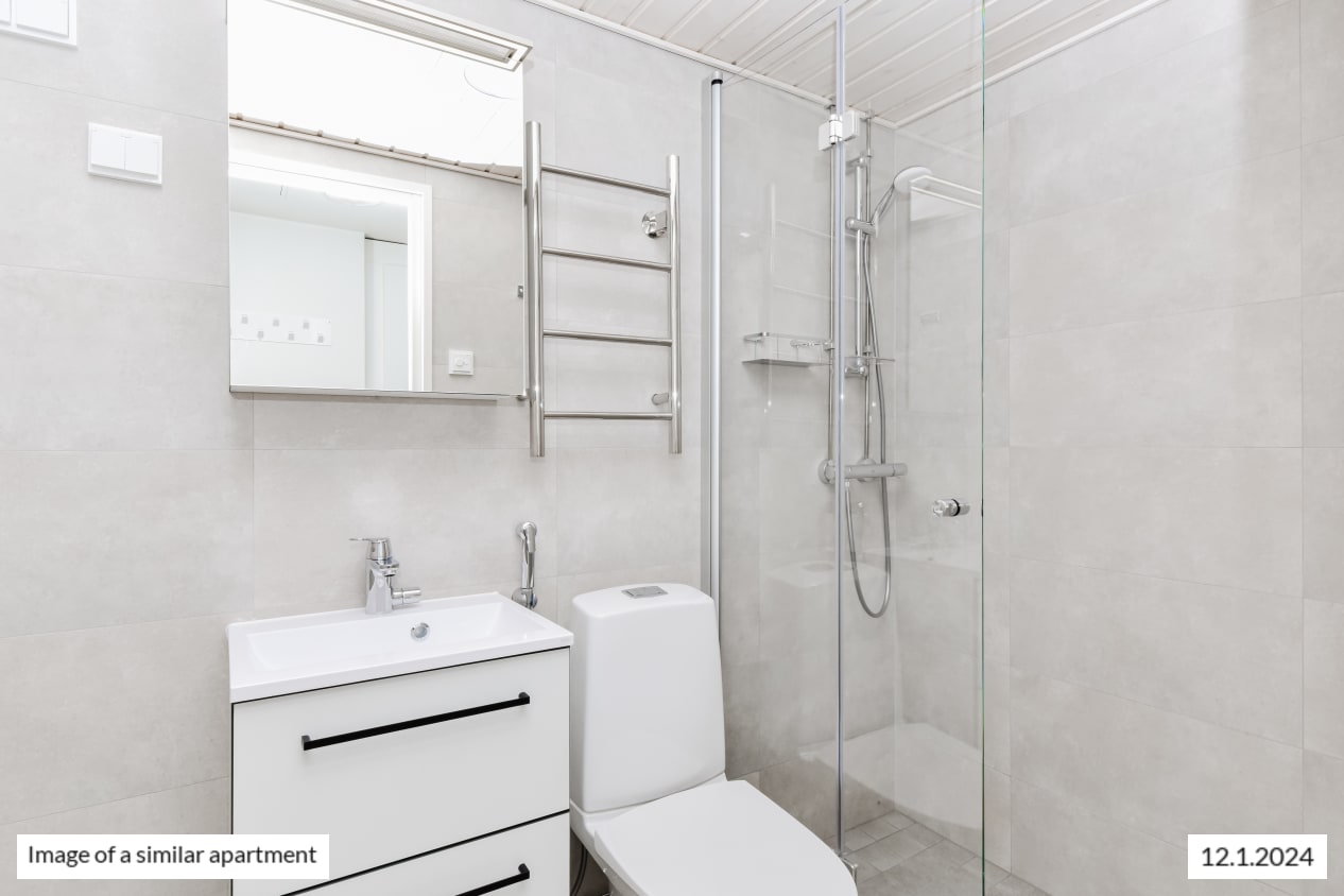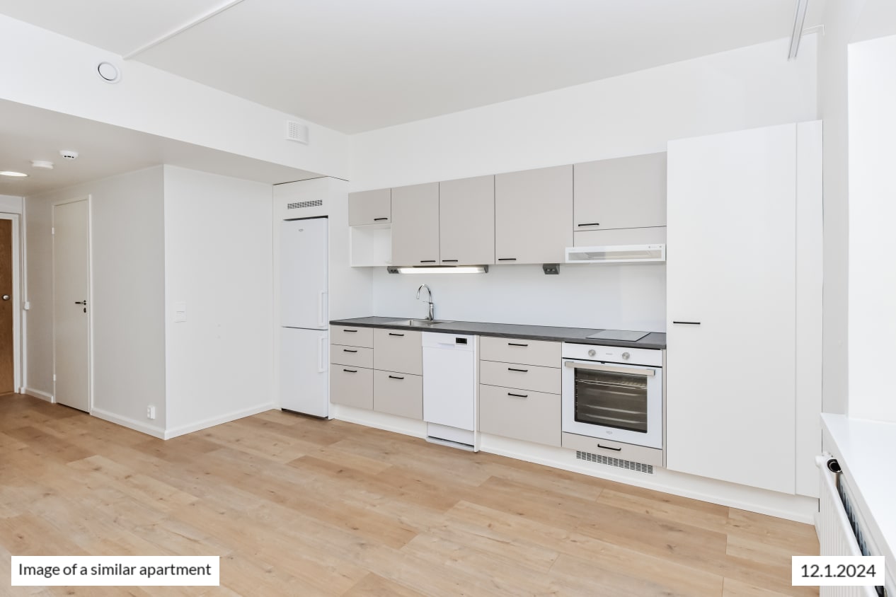 Hämeentie 40 was renovated in 2023 with respect for the 1950s spirit of the building. The building has seven residential storeys and two staircase sections with lifts. Please notice that not all apartments in the building built in 1952 meet modern accessibility requirements. Please note that the surface materials and technical solutions of Hämeentie 42 and 44 differ from these. The interior decor materials, furnishings and fittings of these light-toned homes are beautiful and timeless. The harmonious colour scheme is pleasing to many tastes and the open, clean layouts make it easy to furnish your home to your liking. The apartment floors are done in light brown oak-effect laminate and the walls are painted in white. The kitchen cabinet doors are in beige and the backsplash in white furniture board, while the countertops are in textured grey. The kitchens are equipped with an induction cooktop (with two burners in the studios and one-bedroom homes and four burners in the two-bedroom homes), built-in oven, extractor fan, 40 or 60 cm dishwasher and fridge-freezer. All appliances are white. There is space for a microwave. The kitchen under-sink cabinet is equipped with SATO’s Seth waste unit consisting of coloured waste bins for easy recycling. The bathroom comes with white Kide range furniture designed for SATO. The massive-laminate Kide furniture is made in Finland and has been awarded both the Key Flag and the Design from Finland symbols. The bathroom walls are done in light marble effect tiles, and the floor tiles are grey. The bathrooms come with hookups and space for a washing machine. The apartments have mechanical supply and exhaust ventilation and district heating. The entrance hallways and bathrooms have fixed light fittings.