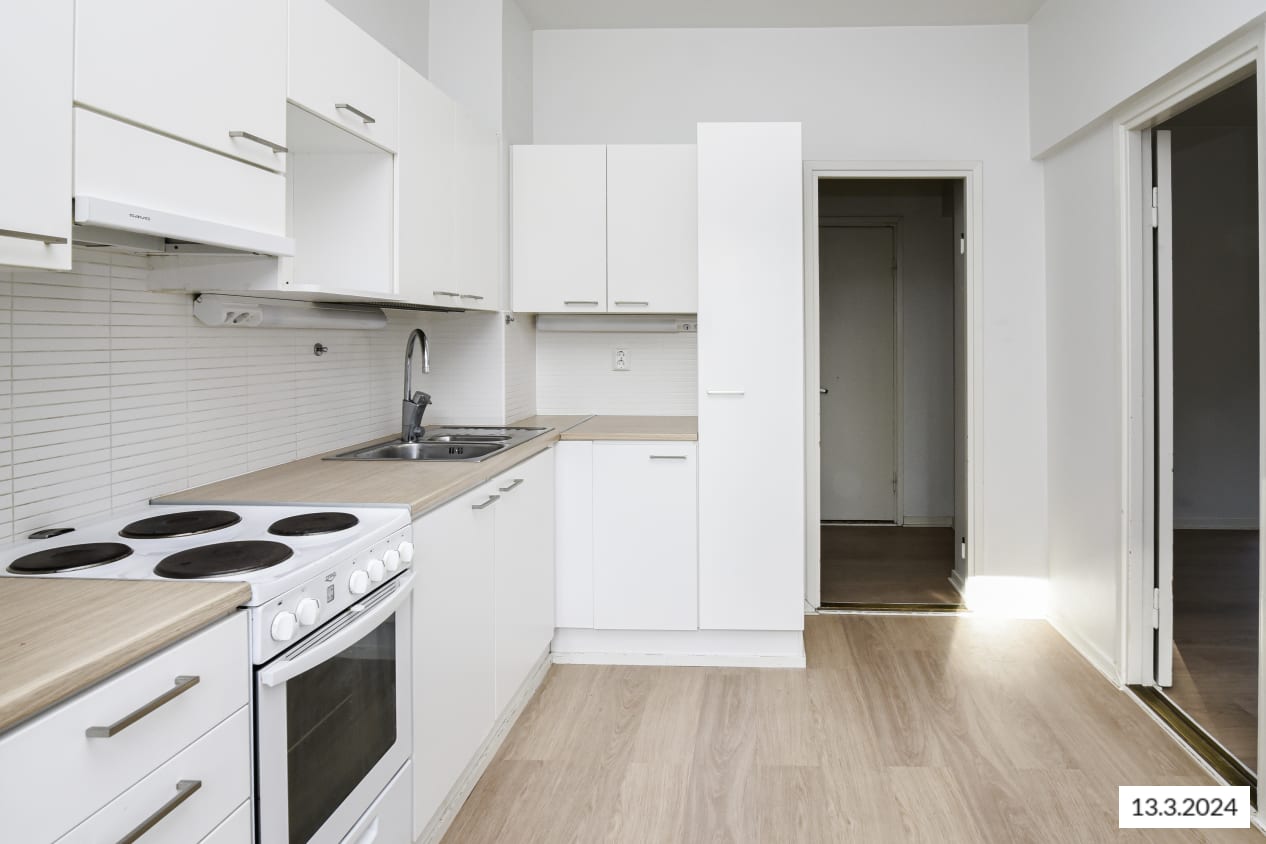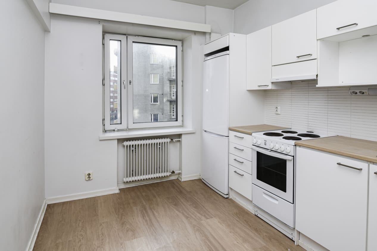 Hämeentie 40 was renovated in 2023 with respect for the 1950s spirit of the building. The building has seven residential storeys and two staircase sections with lifts. Please notice that not all apartments in the building built in 1952 meet modern accessibility requirements. Please note that the surface materials and technical solutions of Hämeentie 42 and 44 differ from these. The interior decor materials, furnishings and fittings of these light-toned homes are beautiful and timeless. The harmonious colour scheme is pleasing to many tastes and the open, clean layouts make it easy to furnish your home to your liking. The apartment floors are done in light brown oak-effect laminate and the walls are painted in white. The kitchen cabinet doors are in beige and the backsplash in white furniture board, while the countertops are in textured grey. The kitchens are equipped with an induction cooktop (with two burners in the studios and one-bedroom homes and four burners in the two-bedroom homes), built-in oven, extractor fan, 40 or 60 cm dishwasher and fridge-freezer. All appliances are white. There is space for a microwave. The kitchen under-sink cabinet is equipped with SATO’s Seth waste unit consisting of coloured waste bins for easy recycling. The bathroom comes with white Kide range furniture designed for SATO. The massive-laminate Kide furniture is made in Finland and has been awarded both the Key Flag and the Design from Finland symbols. The bathroom walls are done in light marble effect tiles, and the floor tiles are grey. The bathrooms come with hookups and space for a washing machine. The apartments have mechanical supply and exhaust ventilation and district heating. The entrance hallways and bathrooms have fixed light fittings.
