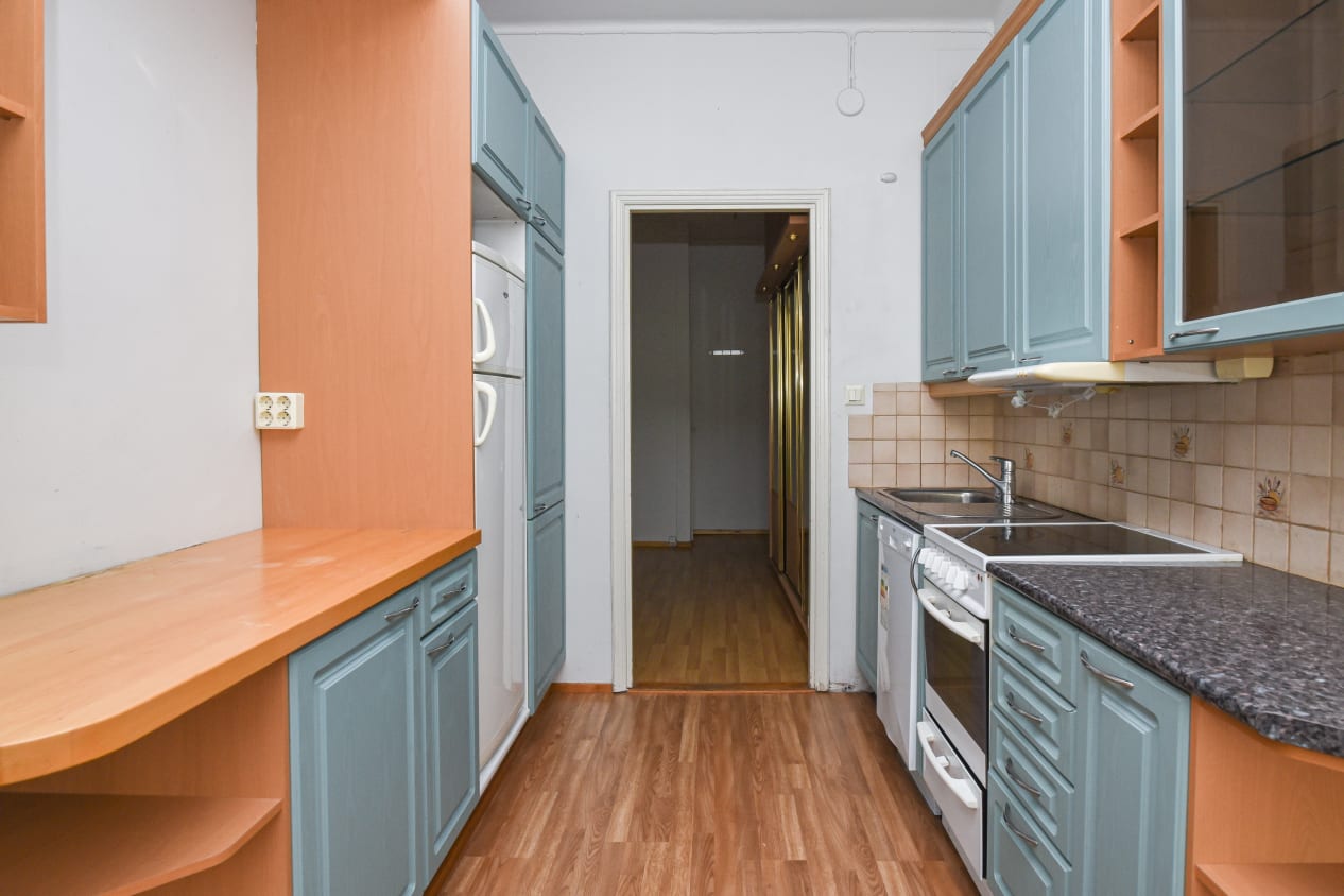 Located a stone's throw from the Sörnäinen metro station, the layout of the cozy studio is easy to decorate. The windows of the apartment open towards the street. The floor material in the living rooms is laminate, and the comfort floor-heated bathroom is tiled throughout.