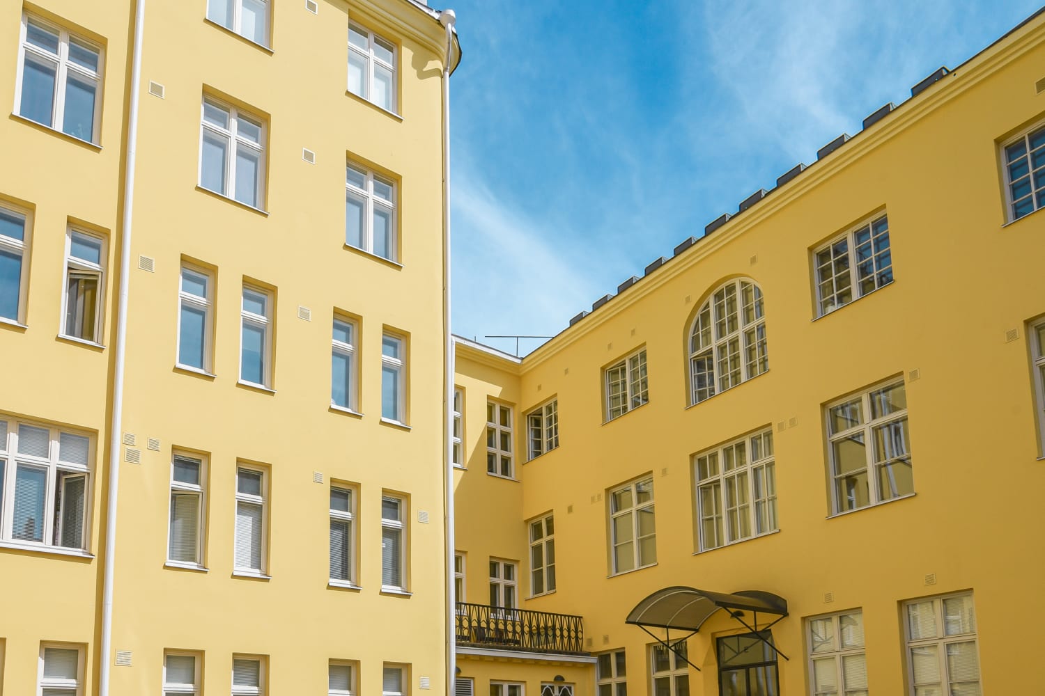 The units in this centrally located late-Jugendstil apartment building have loads of character and natural light. The windows in sections A and B face Kalevankatu street and the inner courtyard while sections D and E have only courtyard exposure.