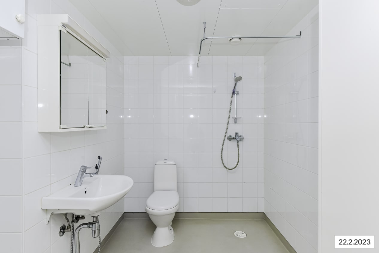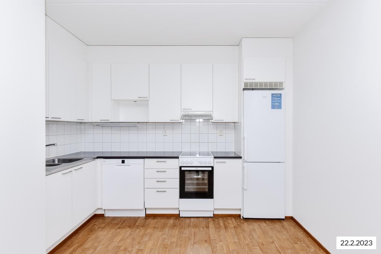 Located at the corner of Ajomiehentie and Limonadikuja streets are two apartment buildings with three to six storeys. The apartment layouts are clean and spacious, and the kitchens open to the living areas. The kitchen units are white and worktops in dark wood-effect laminate. There is space and hookups for a washing machine in the spacious bathrooms.