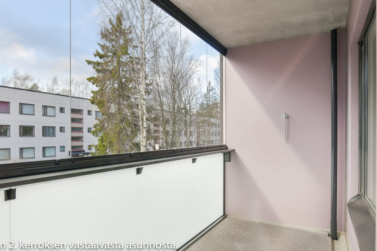 Kaarenjalka 5a is an 8-storey building with its white brick tile facades and strip-like windows being an excellent match to the overall look of the neighbourhood. The building has 56 rental homes from efficient studios and 1-bedroom homes to 3-bedroom apartments with a private sauna. The glassed-in balconies and carefully considered floor plans create a sense of space and airiness in all of the homes. There is a storage space at the entrance to all apartments, providing handy storage for items such as sports and leisure equipment. The building’s shared sauna section with a terrace for cooling down, the laundry and drying room as well as the outdoor equipment and apartment-specific storage units are located on Floor 1. There is also a separate storage building for bicycles on the grounds.