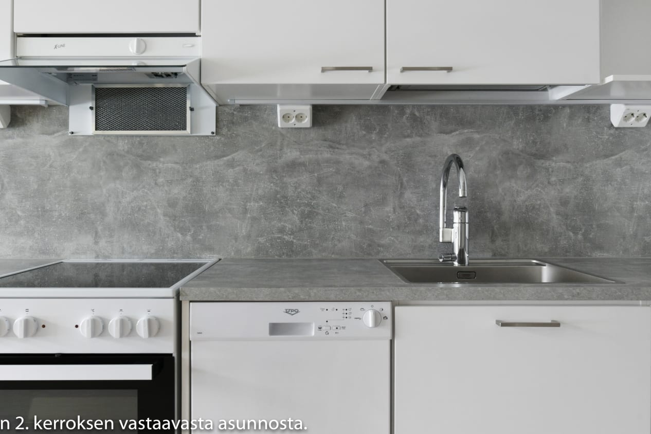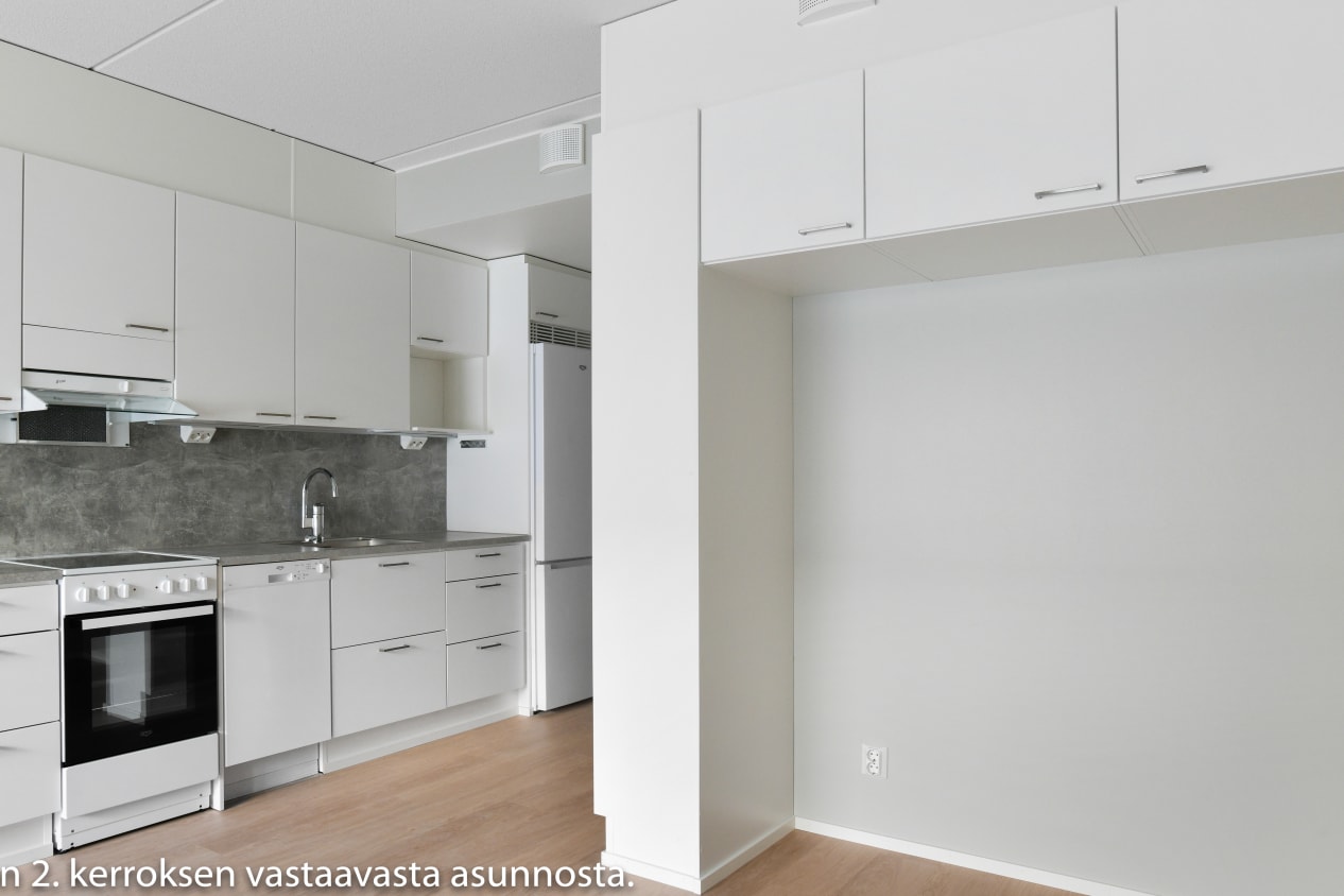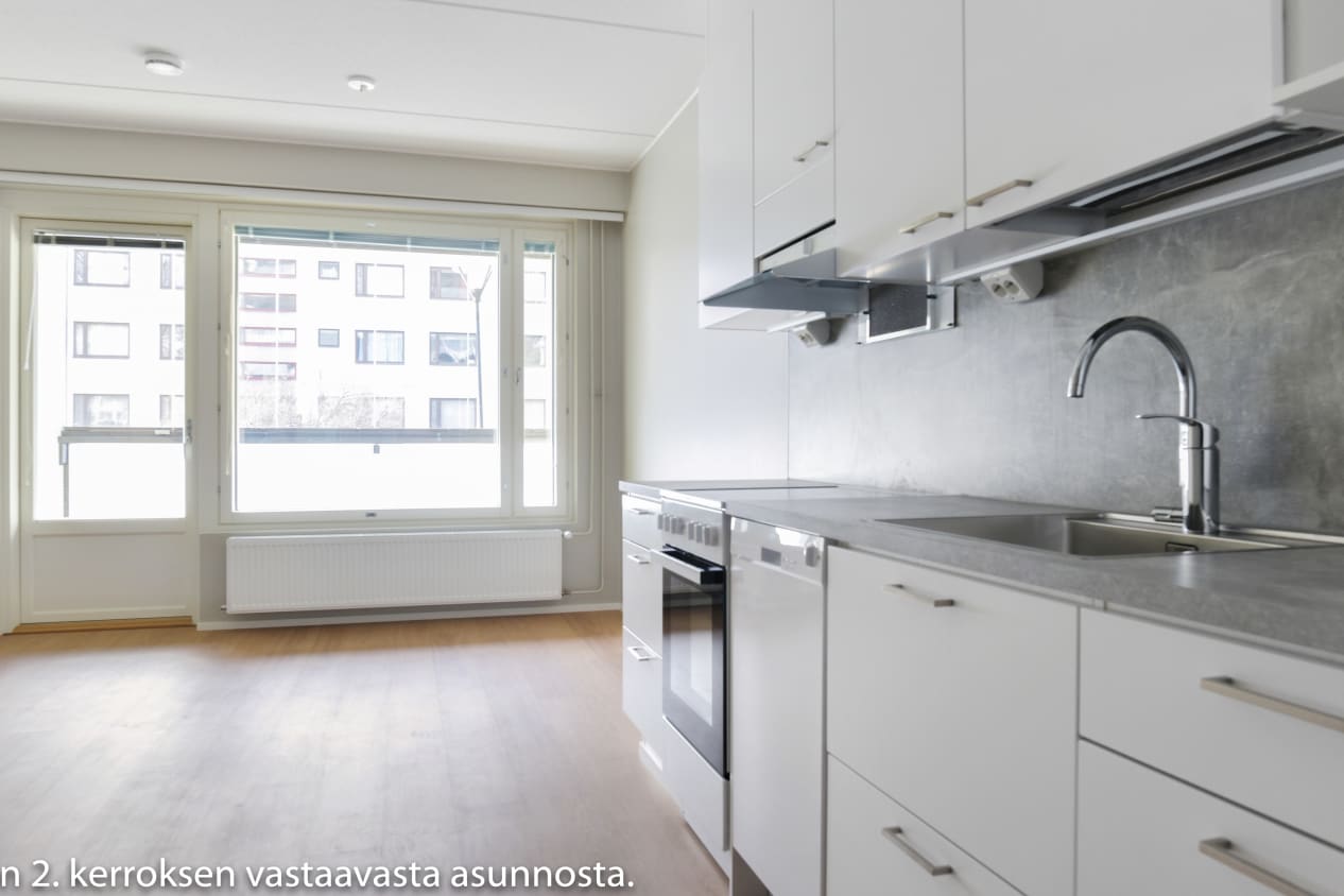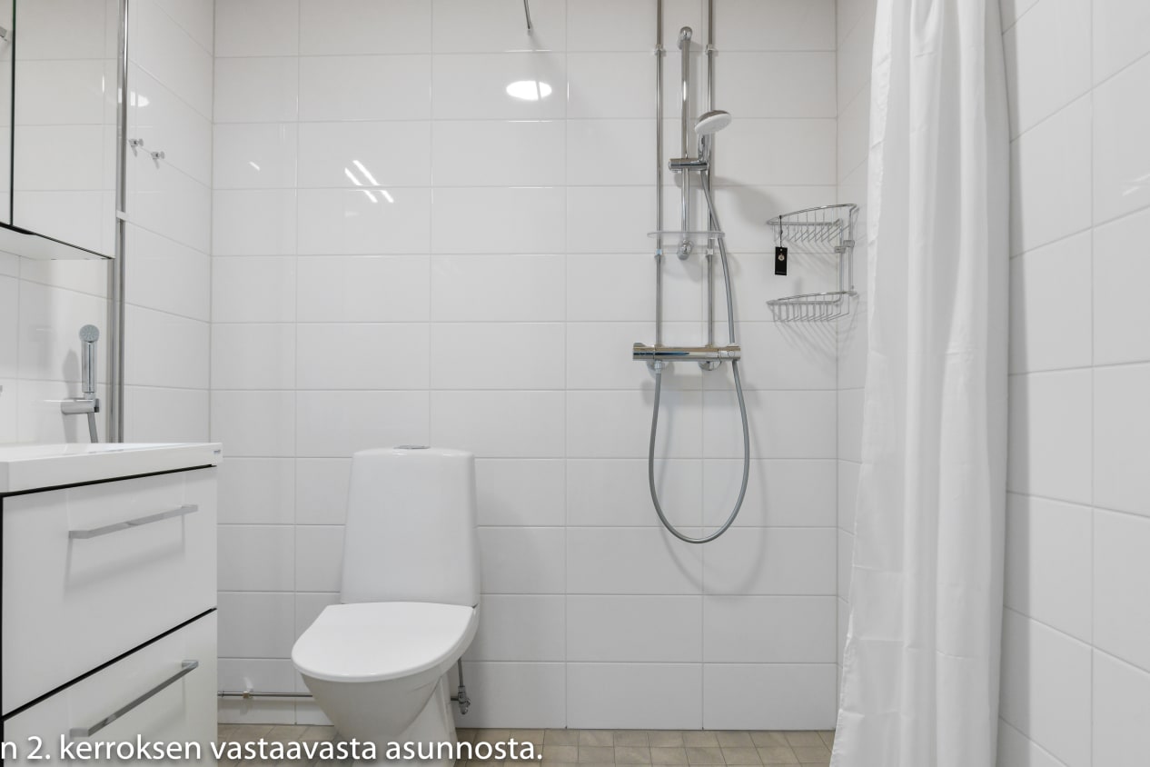 Kaarenjalka 5a is an 8-storey building with its white brick tile facades and strip-like windows being an excellent match to the overall look of the neighbourhood. The building has 56 rental homes from efficient studios and 1-bedroom homes to 3-bedroom apartments with a private sauna. The glassed-in balconies and carefully considered floor plans create a sense of space and airiness in all of the homes. There is a storage space at the entrance to all apartments, providing handy storage for items such as sports and leisure equipment. The building’s shared sauna section with a terrace for cooling down, the laundry and drying room as well as the outdoor equipment and apartment-specific storage units are located on Floor 1. There is also a separate storage building for bicycles on the grounds.