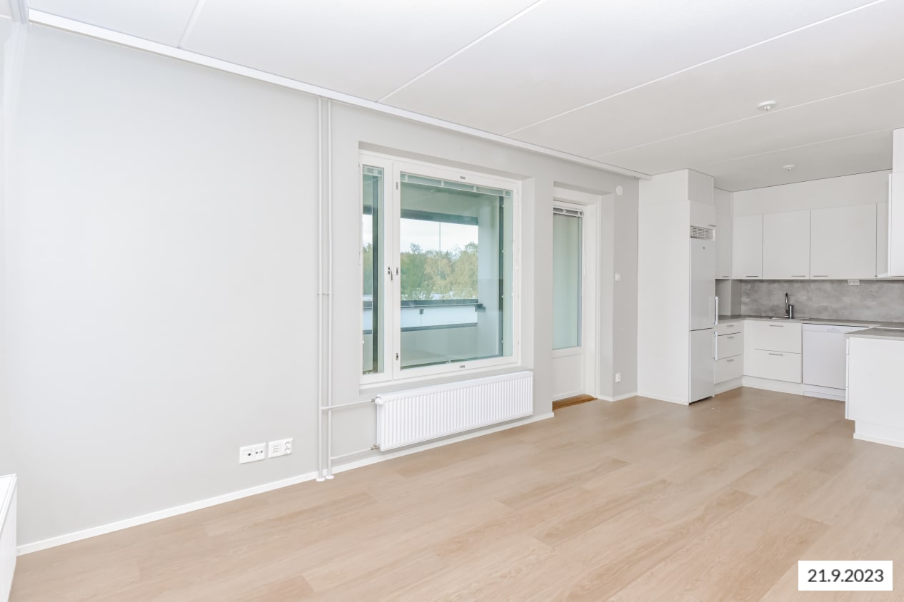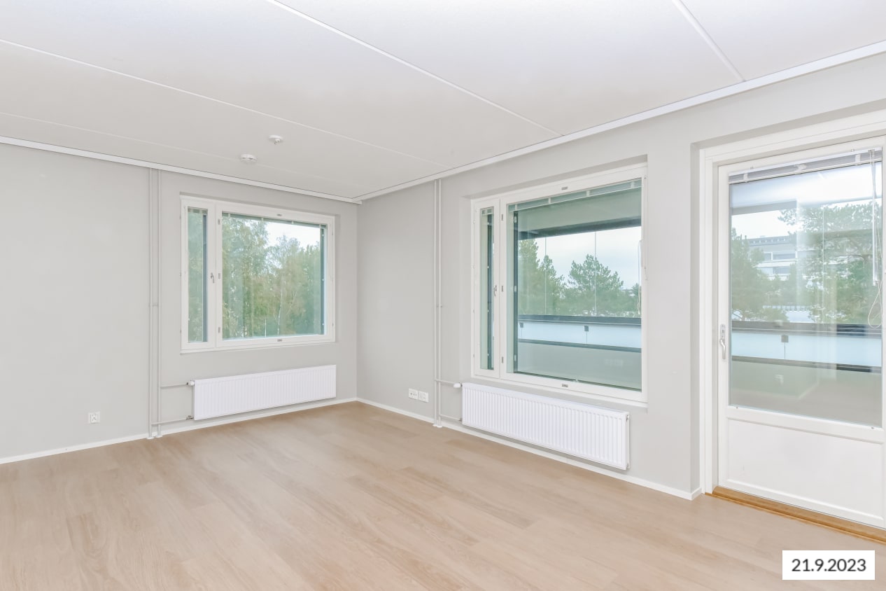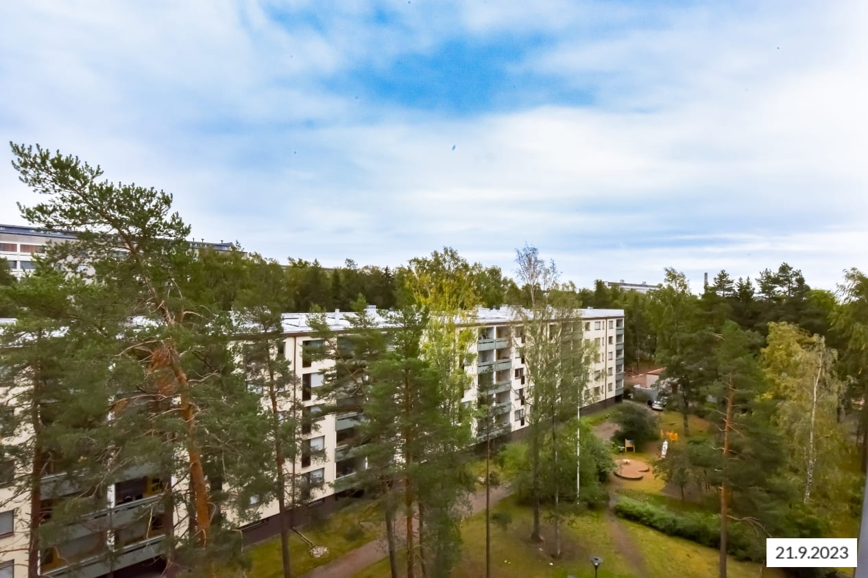 Kaarenjalka 5a is an 8-storey building with its white brick tile facades and strip-like windows being an excellent match to the overall look of the neighbourhood. The building has 56 rental homes from efficient studios and 1-bedroom homes to 3-bedroom apartments with a private sauna. The glassed-in balconies and carefully considered floor plans create a sense of space and airiness in all of the homes. There is a storage space at the entrance to all apartments, providing handy storage for items such as sports and leisure equipment. The building’s shared sauna section with a terrace for cooling down, the laundry and drying room as well as the outdoor equipment and apartment-specific storage units are located on Floor 1. There is also a separate storage building for bicycles on the grounds.