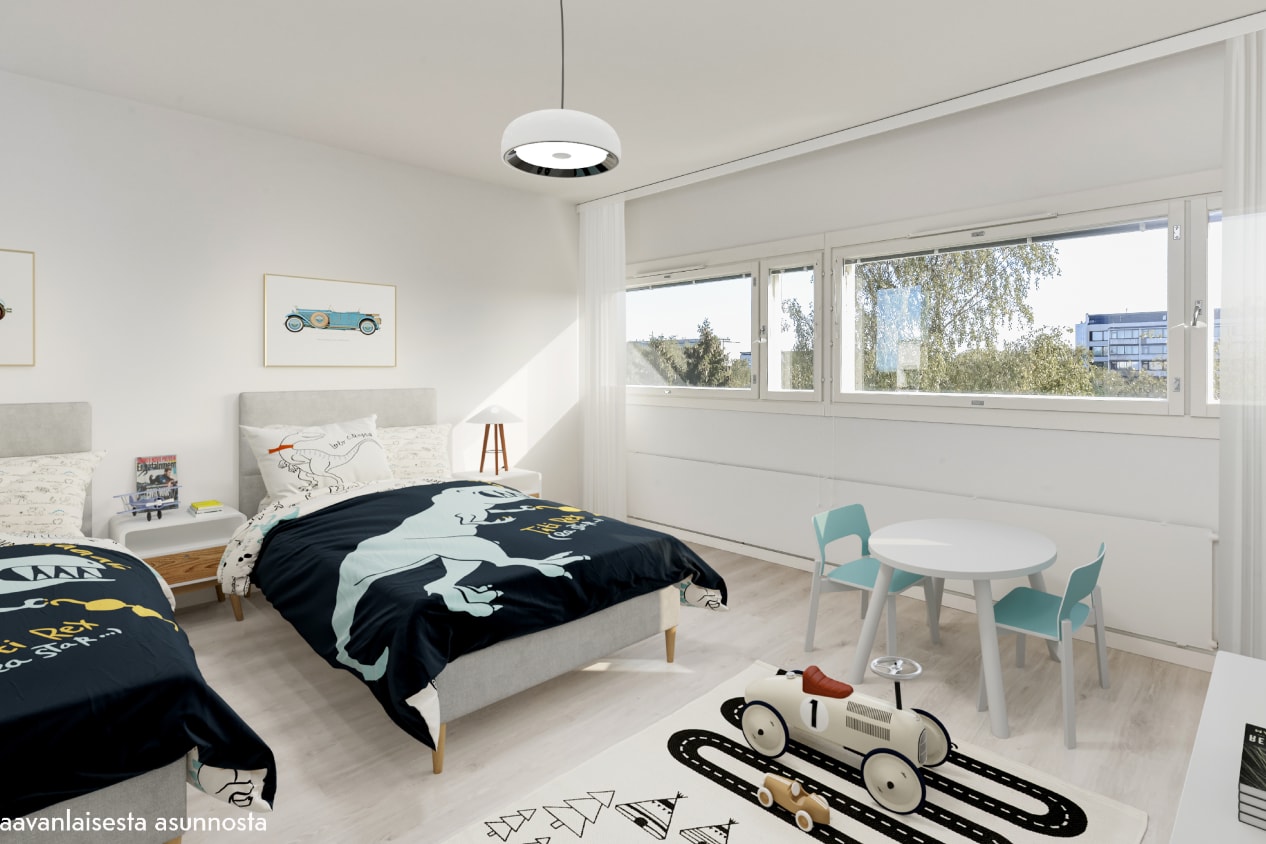 Keinulaudantie 7 has two eight-storey buildings, which have 152 rental homes from efficient studios to nearly 100 m2 3-bedroom units. All apartments have been fully renovated to give them a fresh new look. The bright apartments have large windows and clean and easily furnished layouts. Except for studios and 1-bedroom+kitchenette, all homes have a sunny glassed-in balcony.