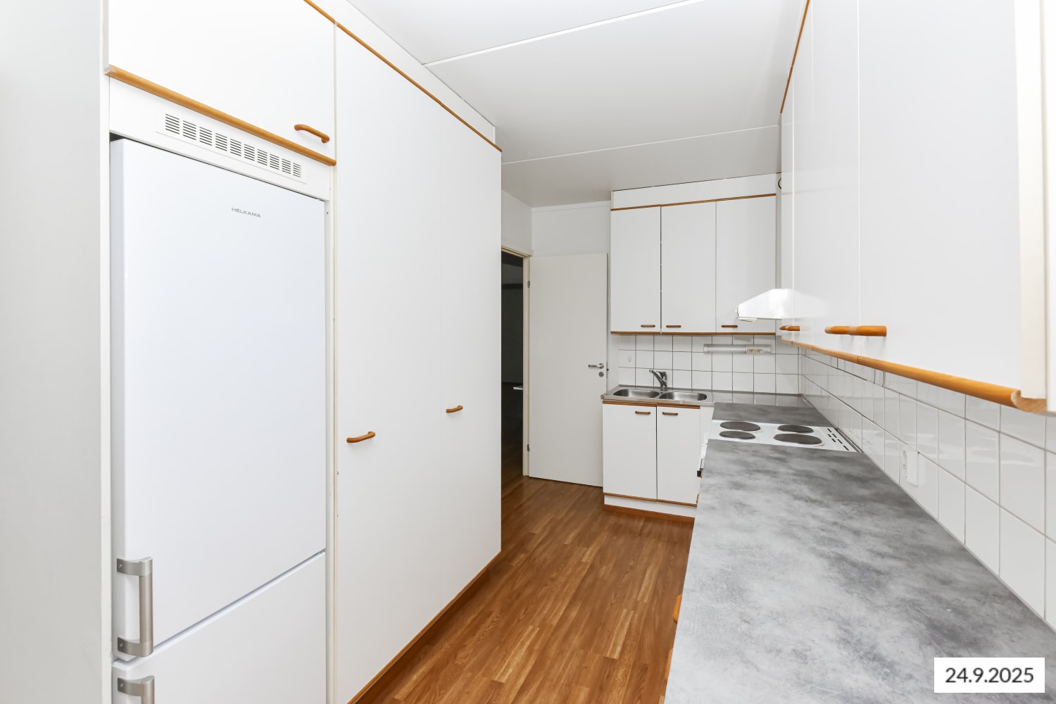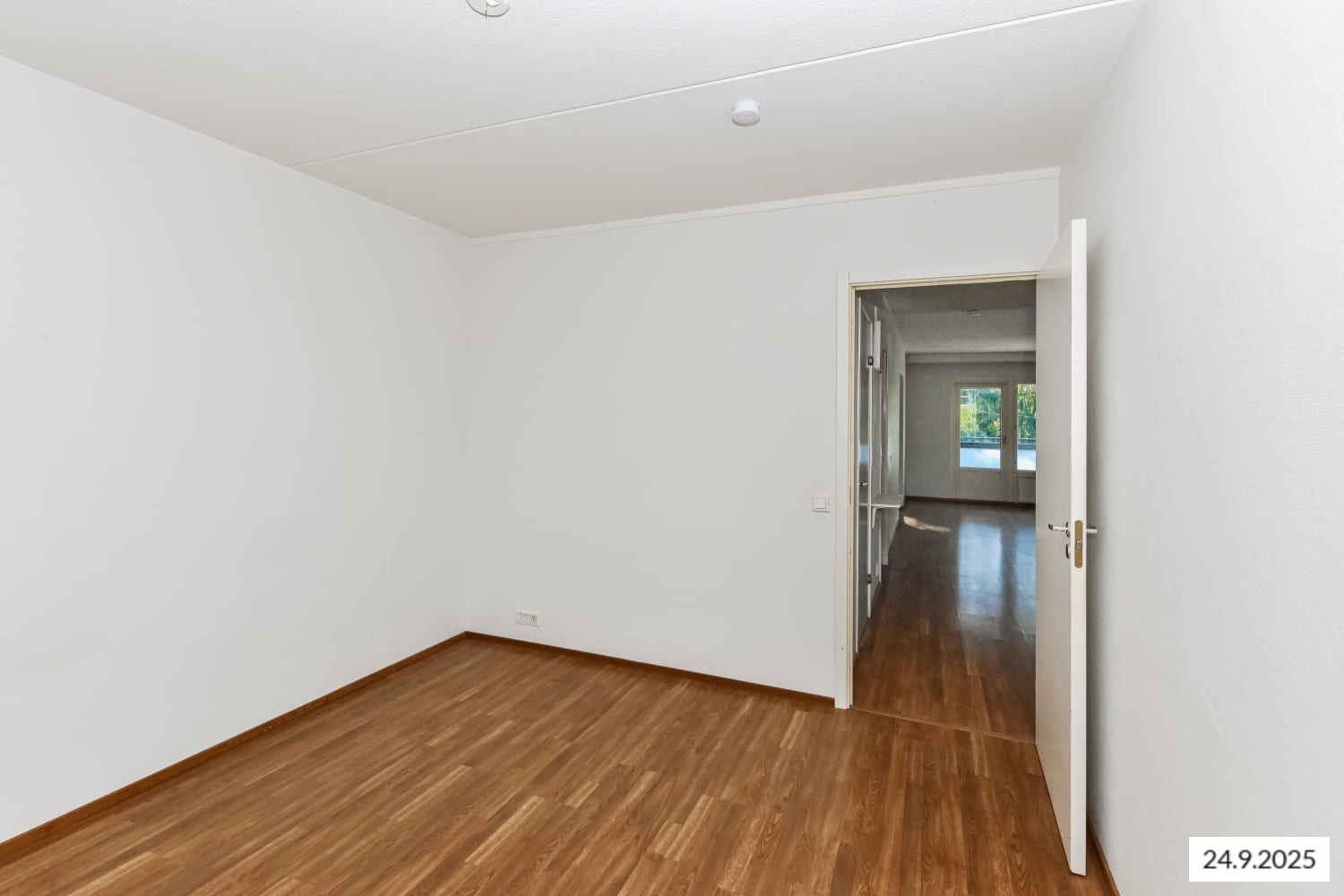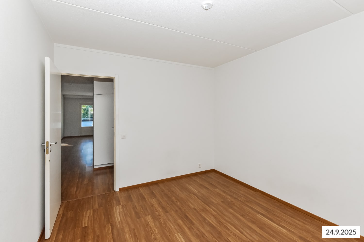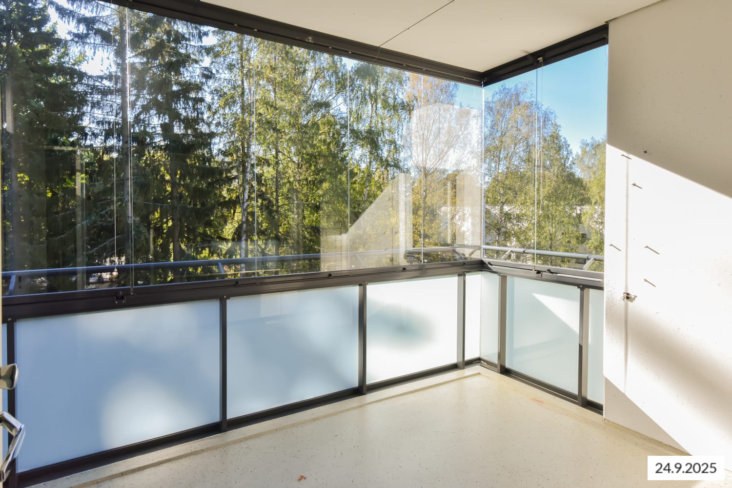 A spacious two-bedroom home has become available in a recently refurbished building. The tranquillity of the top floor adds to the home's cosiness and the clear layout simplifies decorating. The glazed balcony offers a lush view to the south towards the garden.