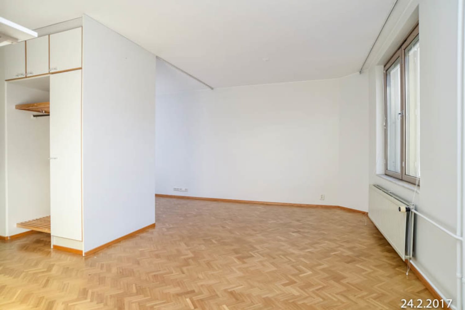 The solidly built property holds units of all sizes, having in common only their loads of character and bright floor plans. The rooms are spacious and the high ceilings add an extra sense of space. Some of the bathrooms have tubs, some have showers. A few of the units of 32 sqm and 74 sqm also have balconies. The building has a charming, well-tended fenced-in courtyard with a play area and swings. The penthouse-level sauna terrace offers lovely urban landscapes; the National Archives and Senate Square to the south, Kaisaniemi park to the west. Laundry room available also for residents.