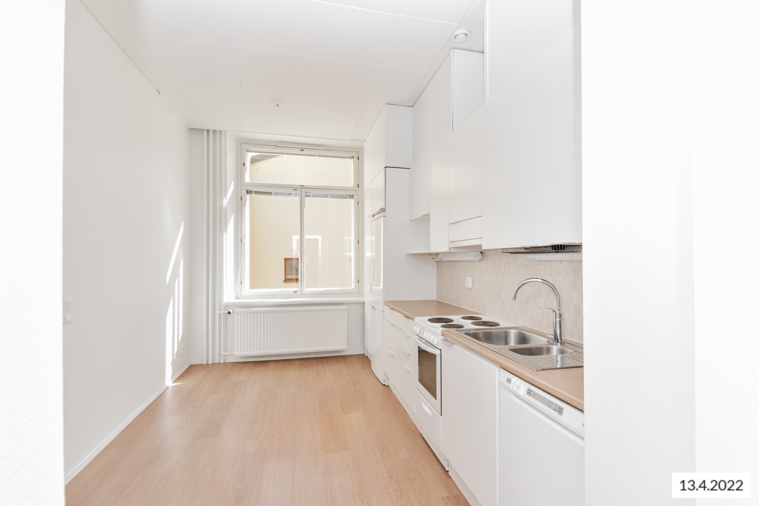 The solidly built property holds units of all sizes, having in common only their loads of character and bright floor plans. The rooms are spacious and the high ceilings add an extra sense of space. Some of the bathrooms have tubs, some have showers. A few of the units of 32 sqm and 74 sqm also have balconies. The building has a charming, well-tended fenced-in courtyard with a play area and swings. The penthouse-level sauna terrace offers lovely urban landscapes; the National Archives and Senate Square to the south, Kaisaniemi park to the west. Laundry room available also for residents.