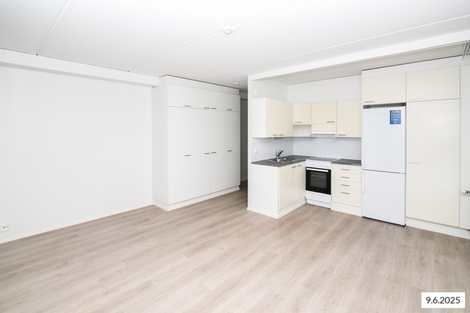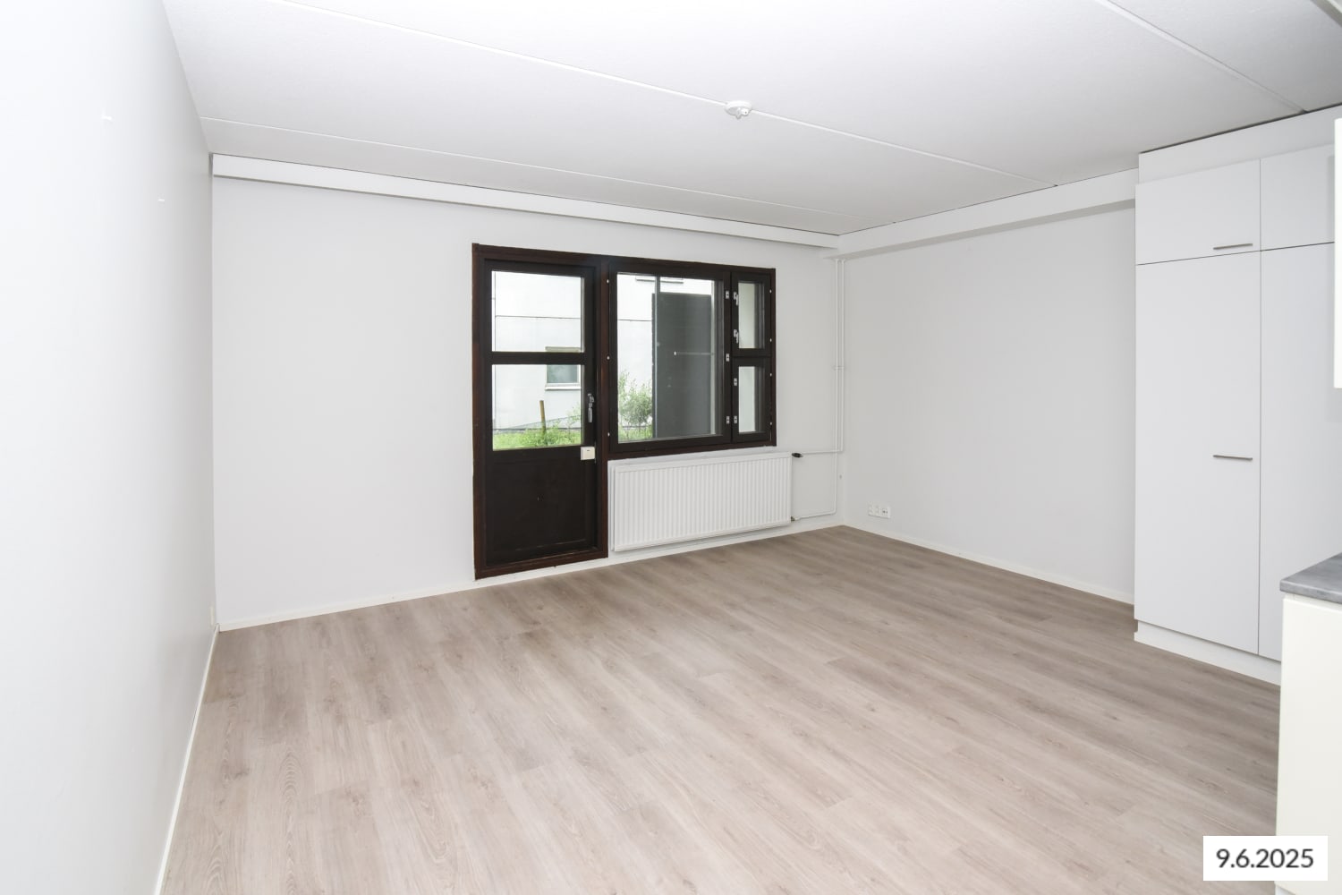 The kitchen area of this convenient studio apartment is combined with the living room, creating a spacious living area that is easy to furnish to your liking. The dining table fits cosily by the window and there is cupboard space in the hallway. Enjoy your morning coffee on your own terrace.