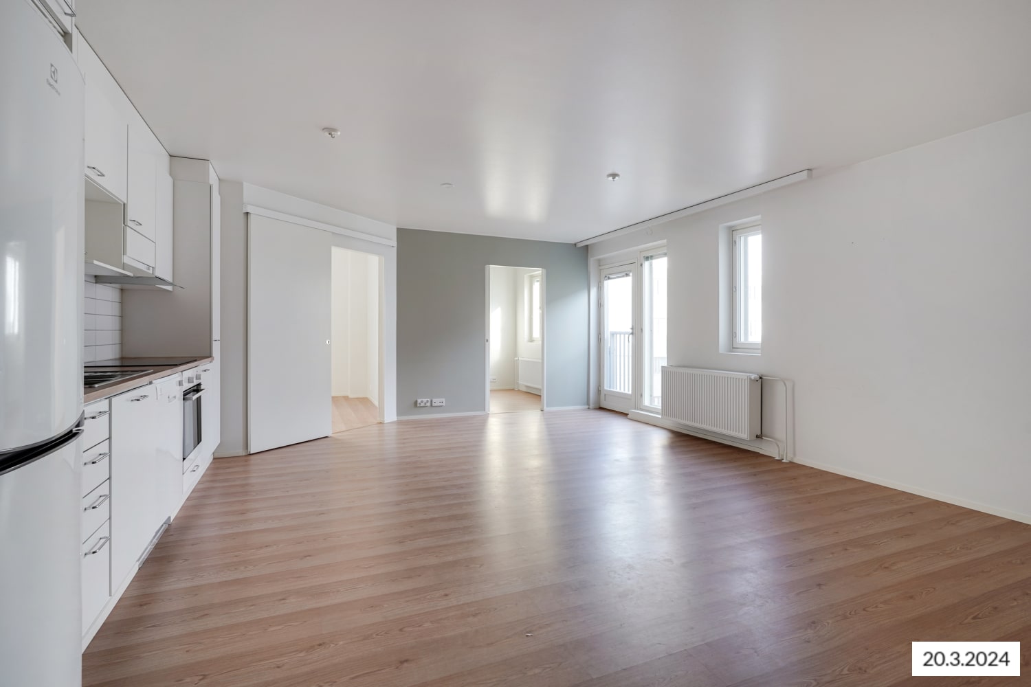 The Lauttasaari home is decorated with timeless and functional materials. The floors feature light-toned, wood-patterned laminate, and one wall in the room has a grey accent color. Bathrooms are finished with white and grey tiles, and the underfloor heating in the bathrooms is connected to the apartment's electricity. The kitchens are equipped with a dishwasher, induction cooktop, and fridge-freezer. The windows have venetian blinds, and apartments with balconies feature glazed balconies. Residents can enjoy the property's versatile shared facilities, which include a sauna, drying room, outdoor equipment storage, and private storage units. Heating is provided by a water-circulating radiator system connected to the district heating network. The apartments have mechanical supply and exhaust ventilation with heat recovery.