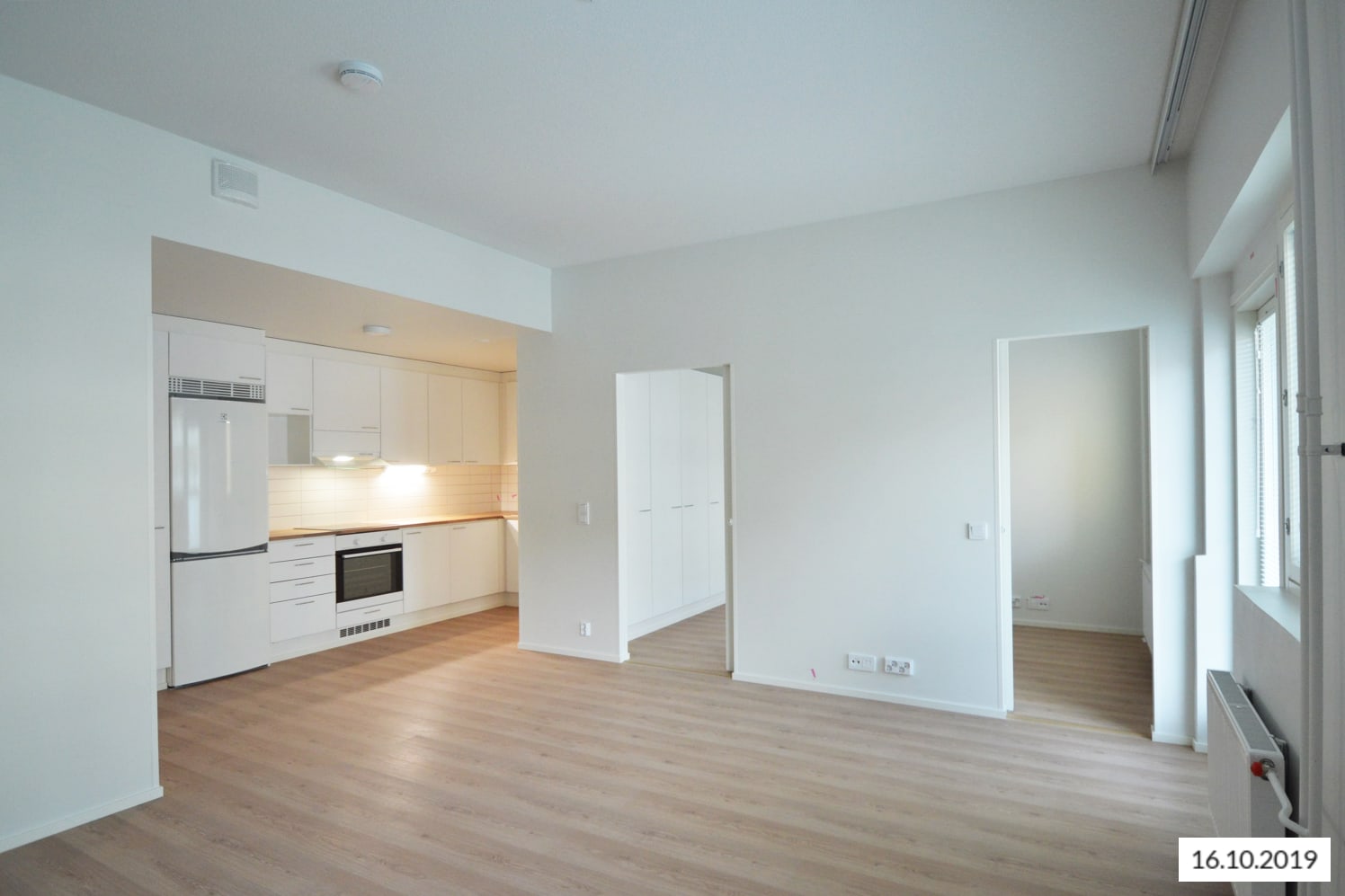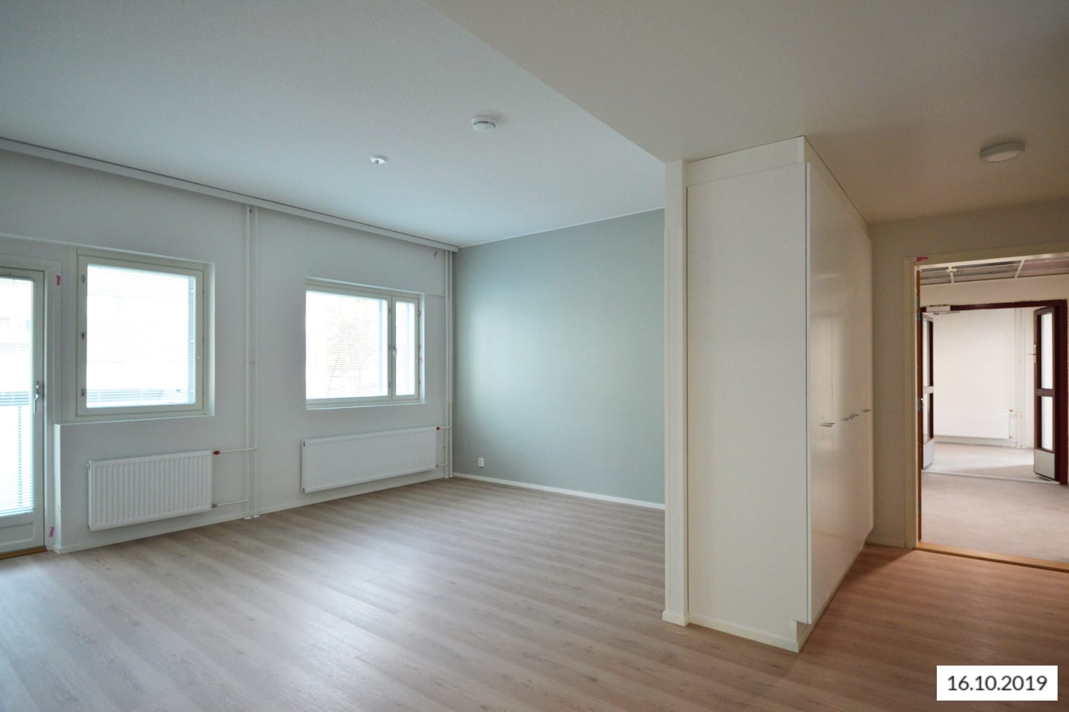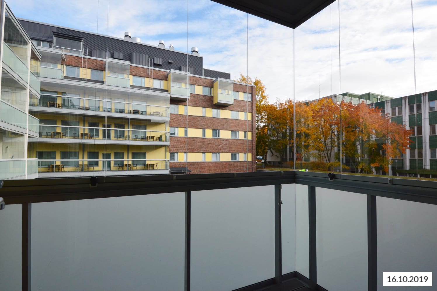 A clear and functional layout makes everyday life smooth in this home. The living room and kitchen area form a cosy space that can be easily furnished to suit your personal style. During summer, the living area extends to the glazed balcony. The building underwent extensive renovations in 2020, resulting in a neat and well-maintained appearance. The window blinds are practical for everyday use.