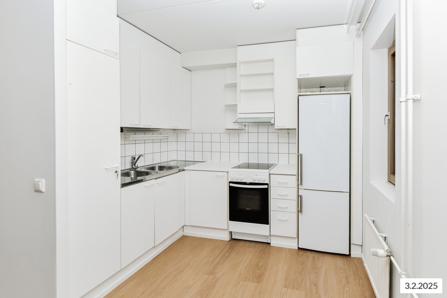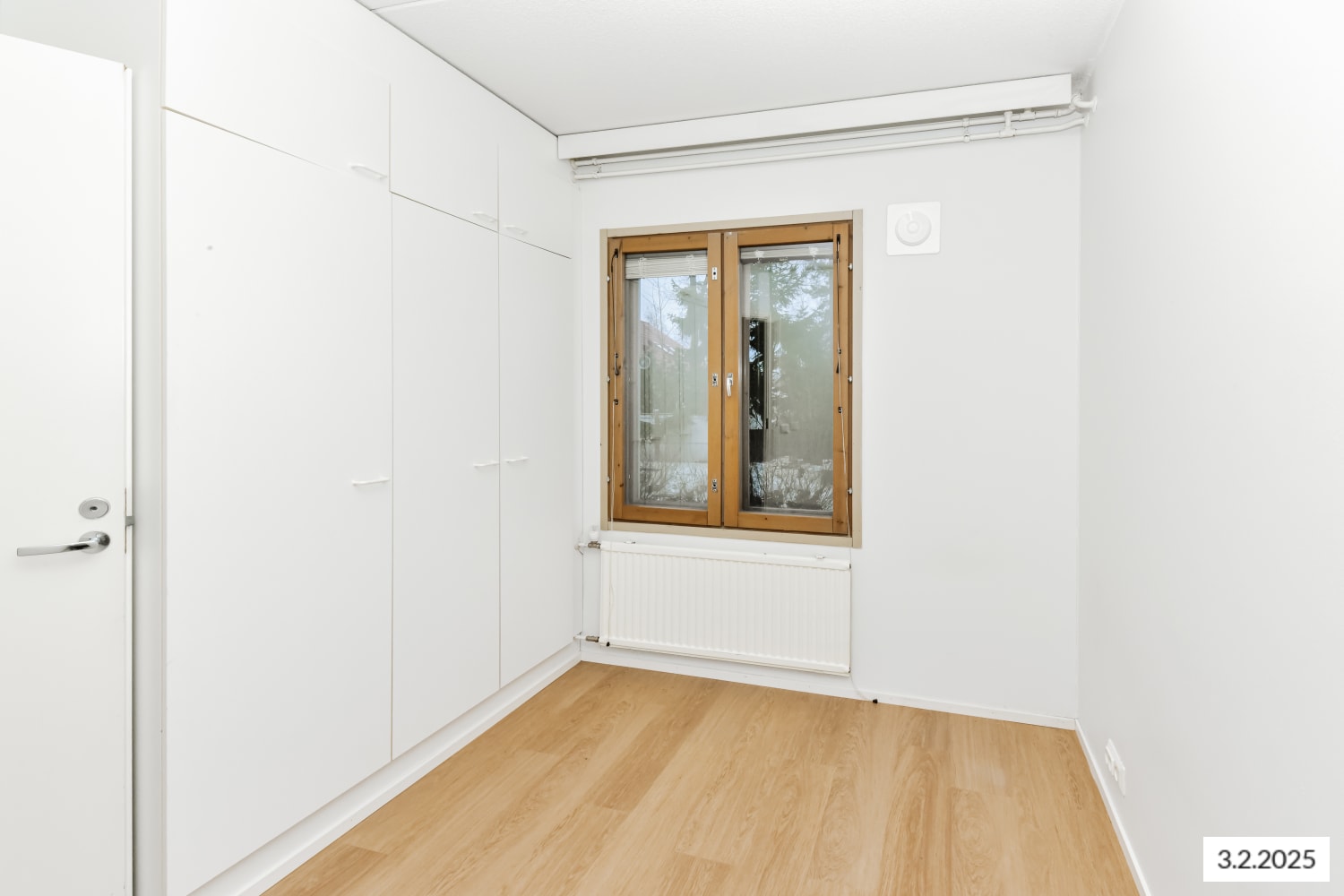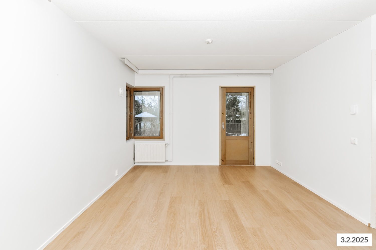 In the leafy and child-friendly residential area between Mustapuronpuisto and Mustikkamäki, there is a one-bedroom home available, waiting for a new resident. The heart of this rental home is the spacious living area formed by the kitchenette and living room, which is easy to furnish to your liking. From the living room of this beautiful first-floor home, there is access to the garden terrace, perfect for enjoying morning coffee on a summer day.