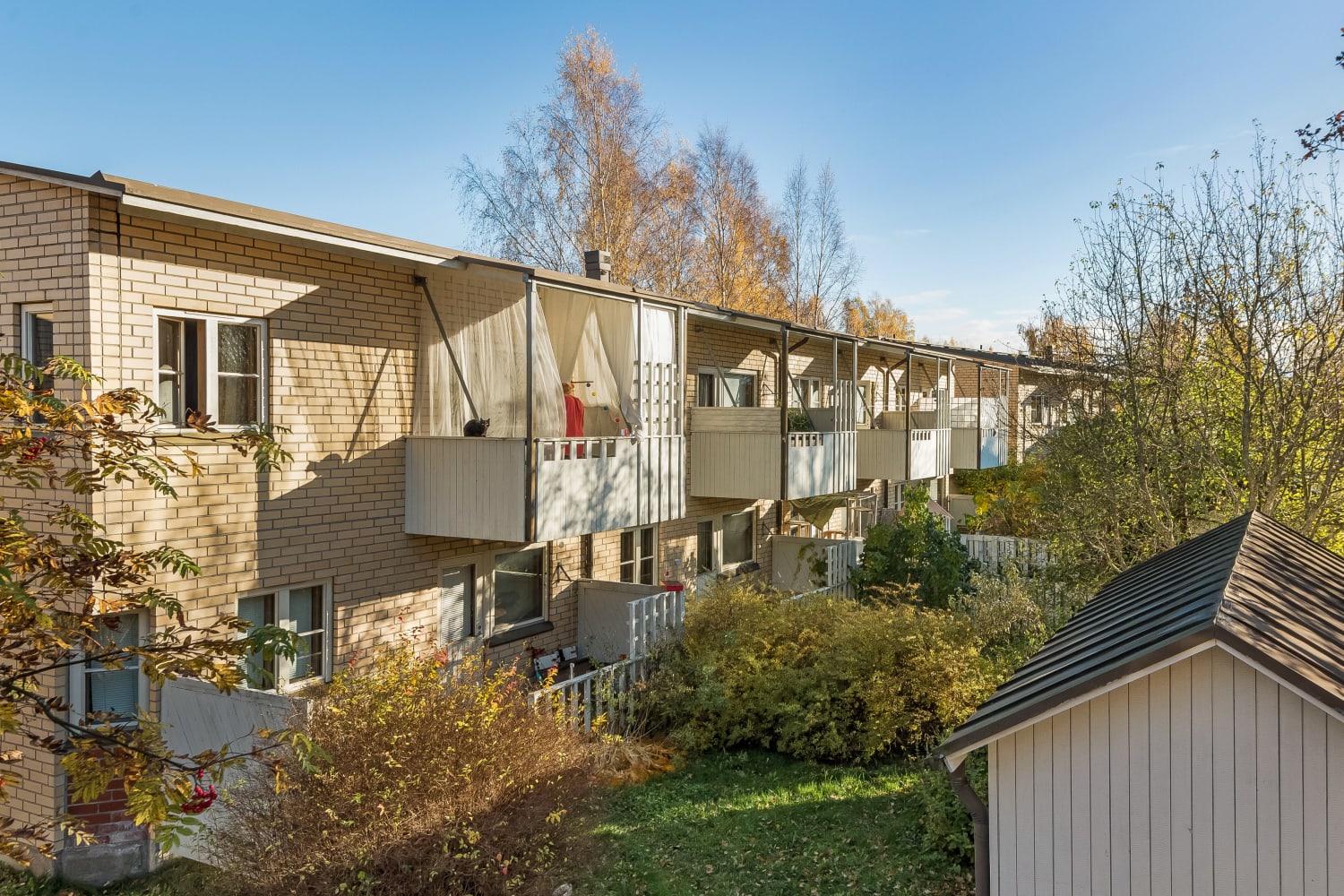 Located in a pleasant and peaceful neighbourhood with houses and low-rise buildings, these fourteen terraces and balcony access blocks surround safe and green grounds. All apartments have a balcony or small private garden and practical, comfortable layouts. There is space for a washing machine in each home.