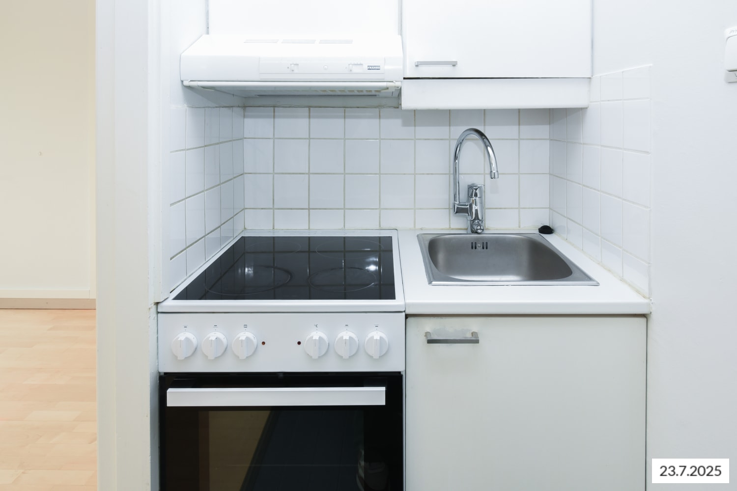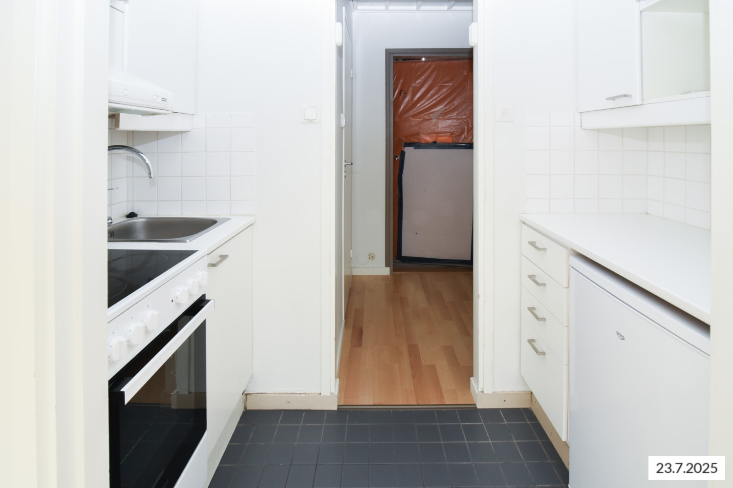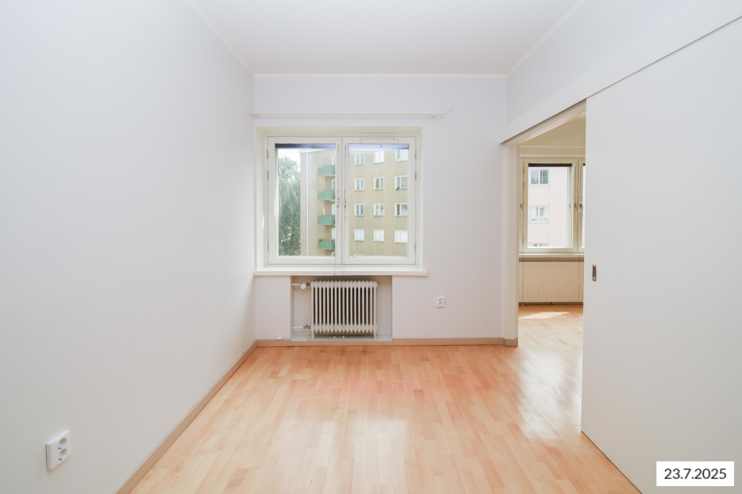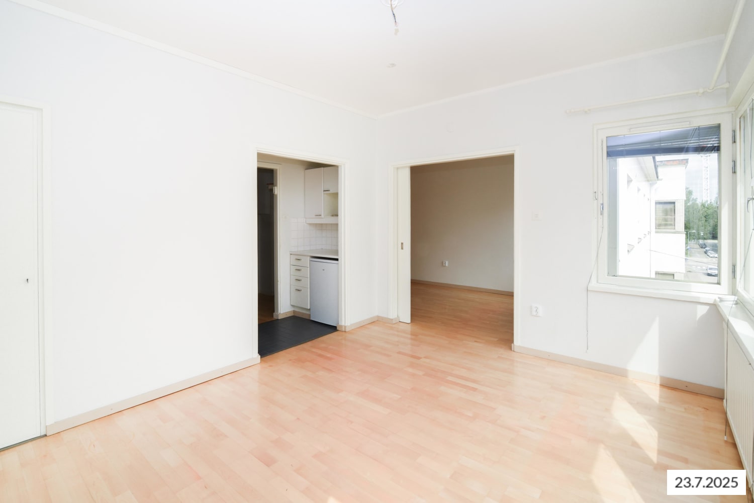 This refurbished small home is a true gem. Located in the peaceful and popular Munkkiniemi, the apartment boasts a top-floor location and a beautiful bay window facing east towards Laajalahdentie. The one-bedroom home is straightforward and easy to furnish to suit the resident's style.