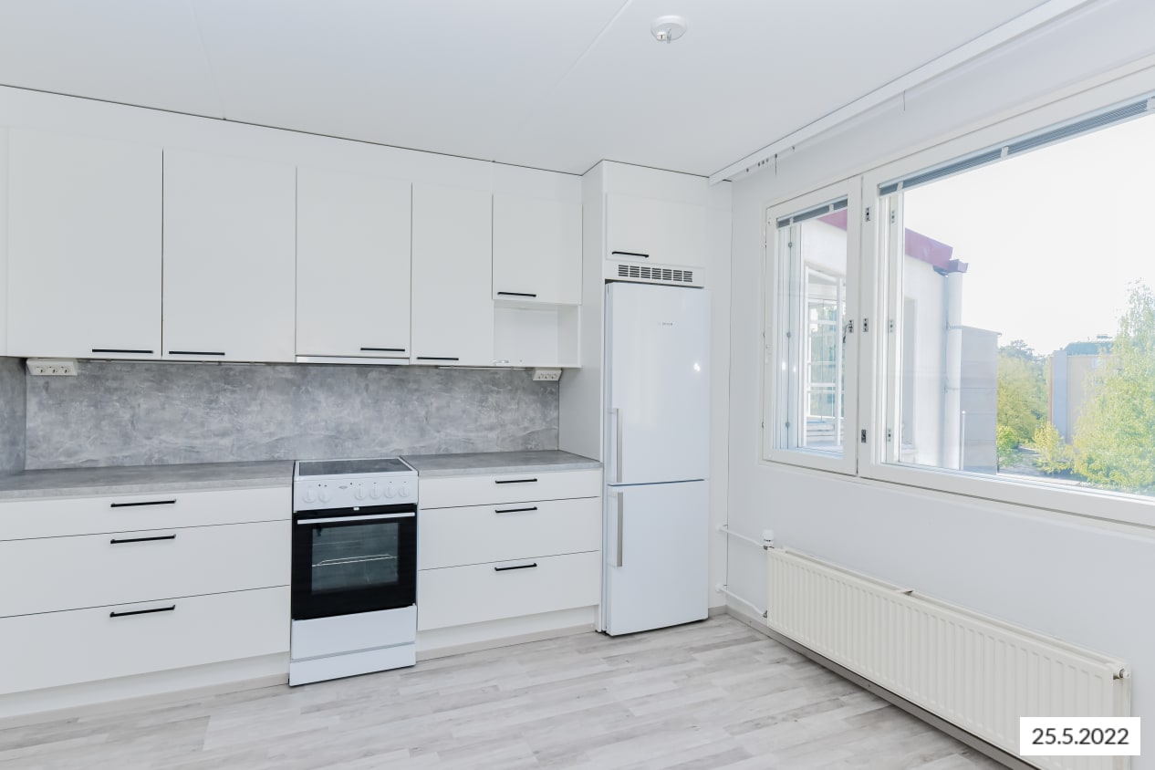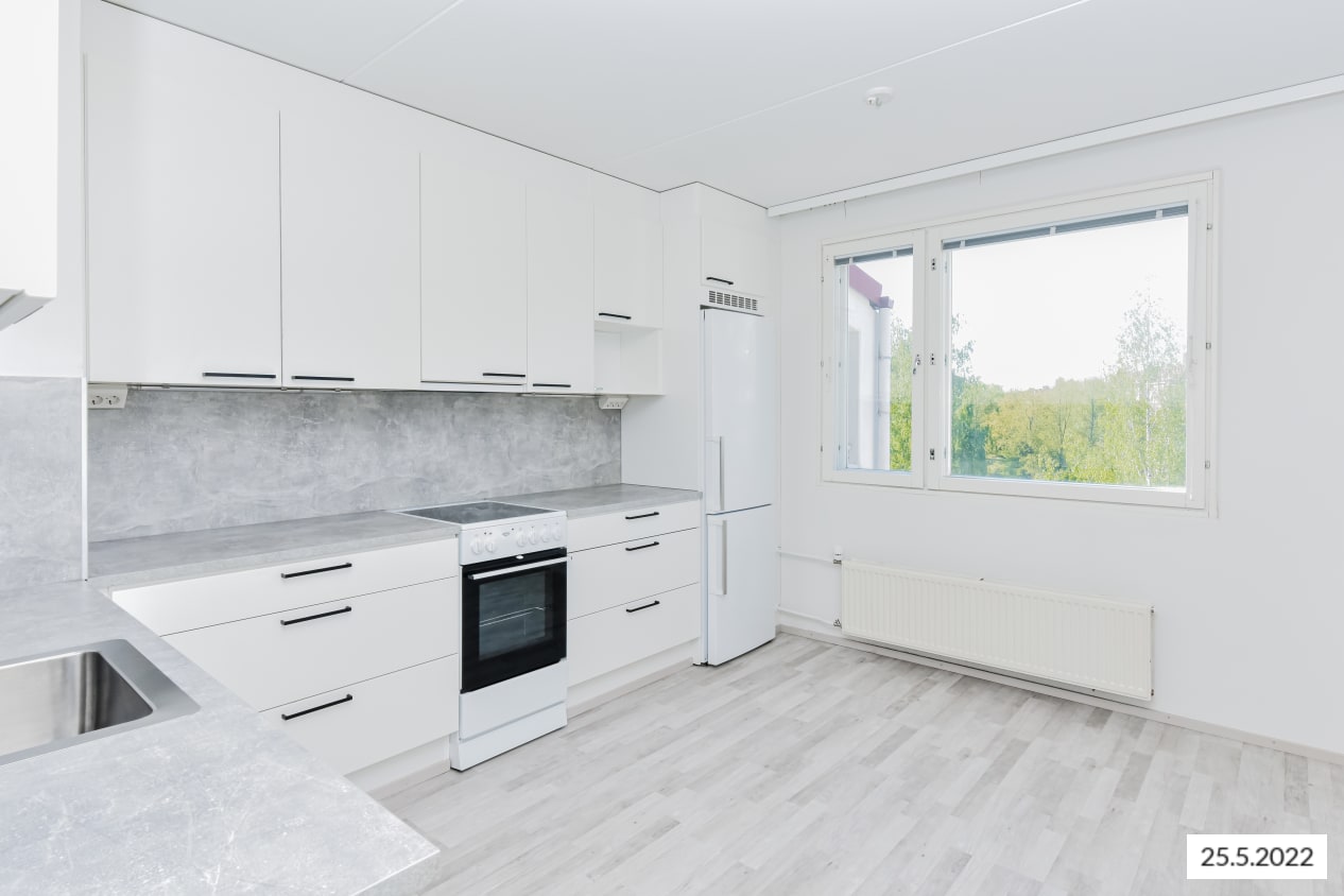 These five-storey buildings are located on a leafy site at the end of Rakuunantie street by a small woodland area. Renovated in 2016–17, the homes have smart and easy-to-furnish space solutions and new, fresh surfaces. Some apartments feature a kitchen opening into the living room while others have a separate kitchen with a dining area. The apartments on the ground floor of building C–D have a ground-level terrace and all other apartments have a balcony.