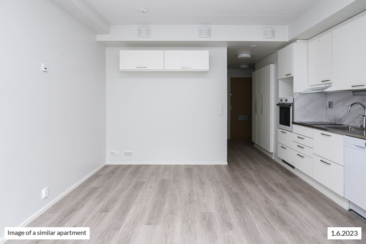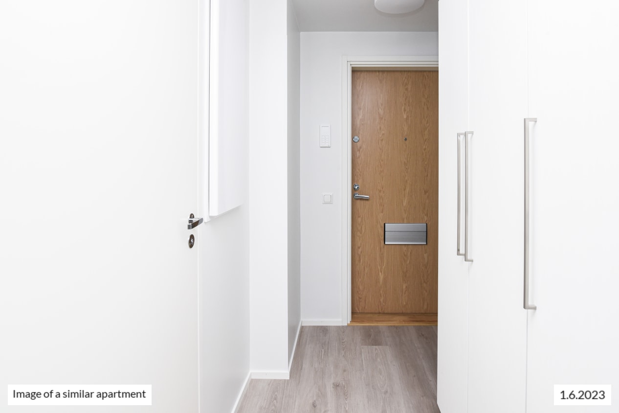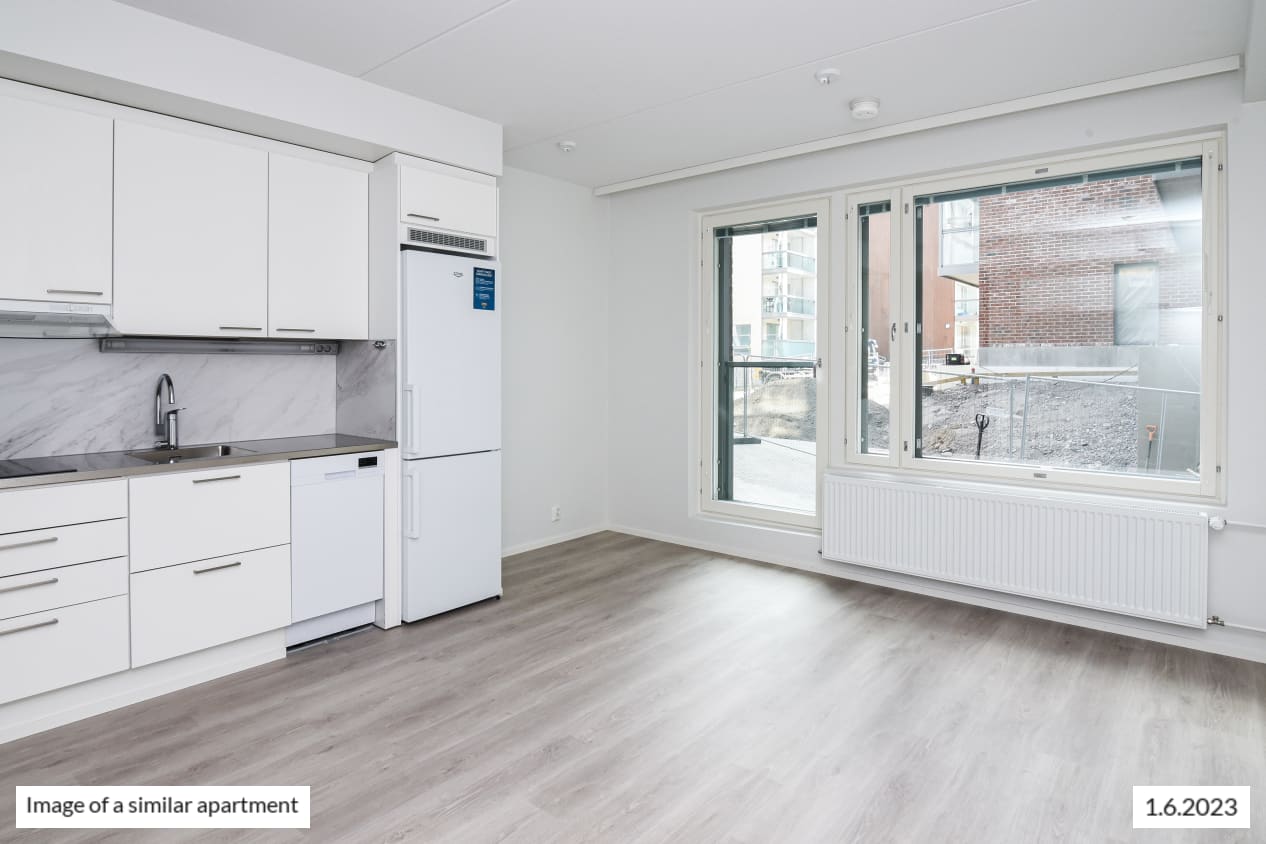 This pleasant little home has everything within your reach. The kitchen and living room combine into a relaxed lounging area that is easy to furnish to create a cosy space. The windows offer views of the peaceful courtyard. There is storage space in the entrance hallway as well as in the handy alcove of the living room.